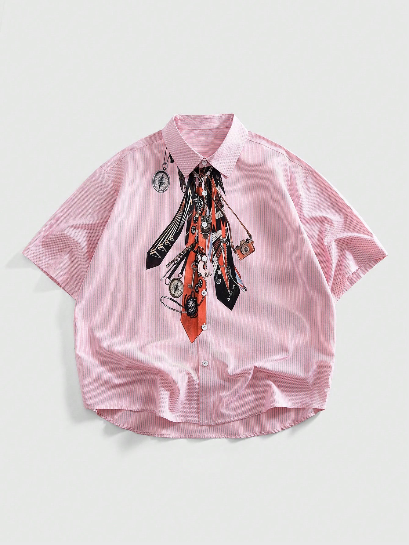 Street Life Chemise décontractée à manches courtes à simple boutonnage avec imprimé cravate pour hommes