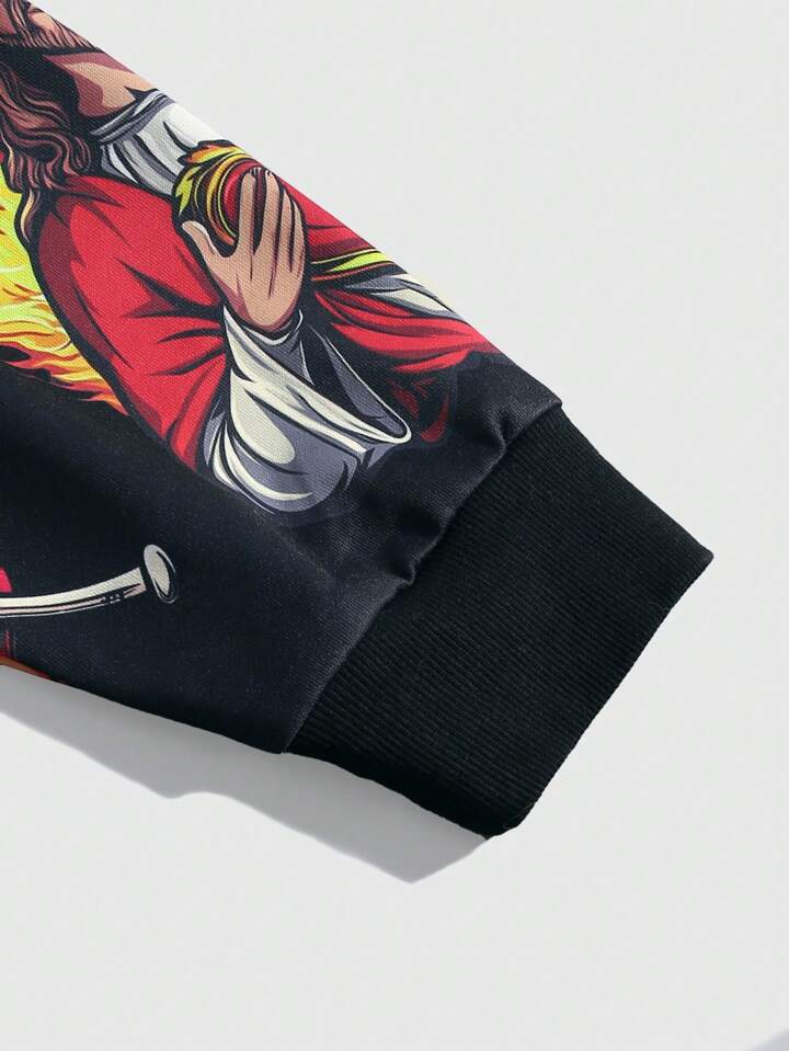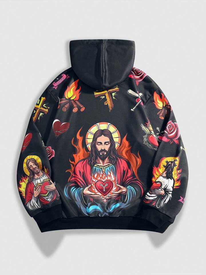 Street Life Sweat-shirt vintage pour hommes avec motif croix, flamme et cœur de Jésus