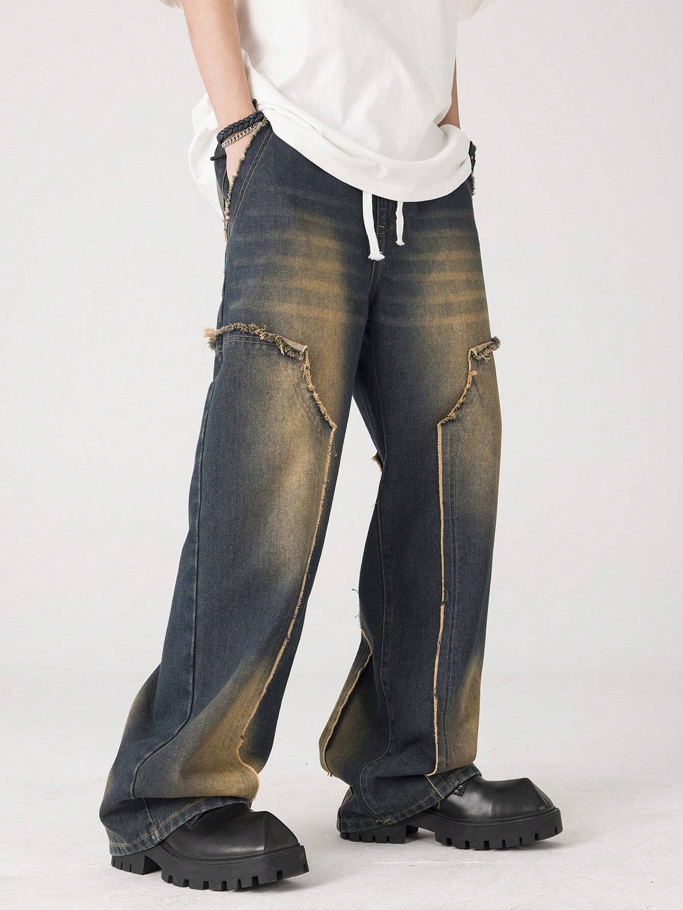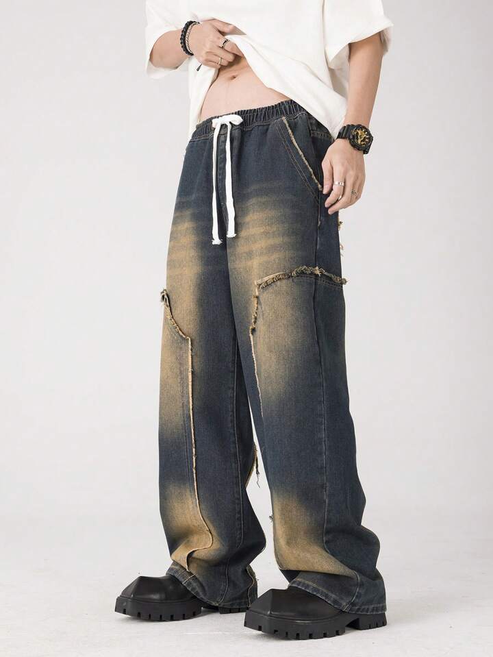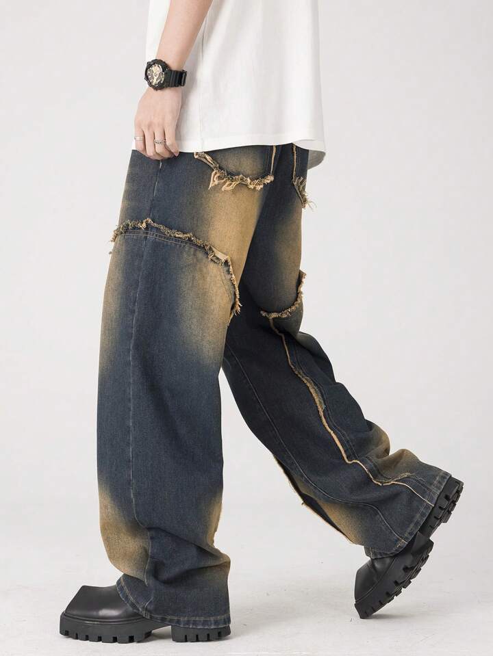 Street Life Pantalon En Jean Vintage À Patchwork Pour Hommes, Convient Aux Vêtements De Les Jours De Printemps Et D'été