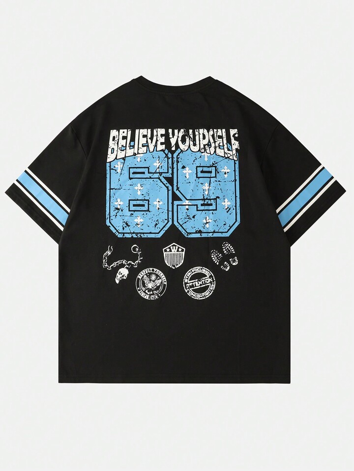 Street Life T-shirt à manches courtes pour hommes avec imprimé vintage ours et numéro, style urbain