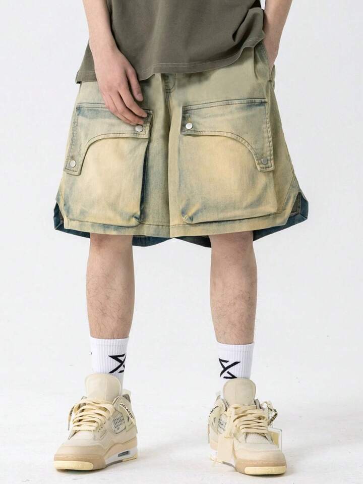 Street Life Shorts en denim à jambes larges pour hommes avec grandes poches et coupe ample, décontracté