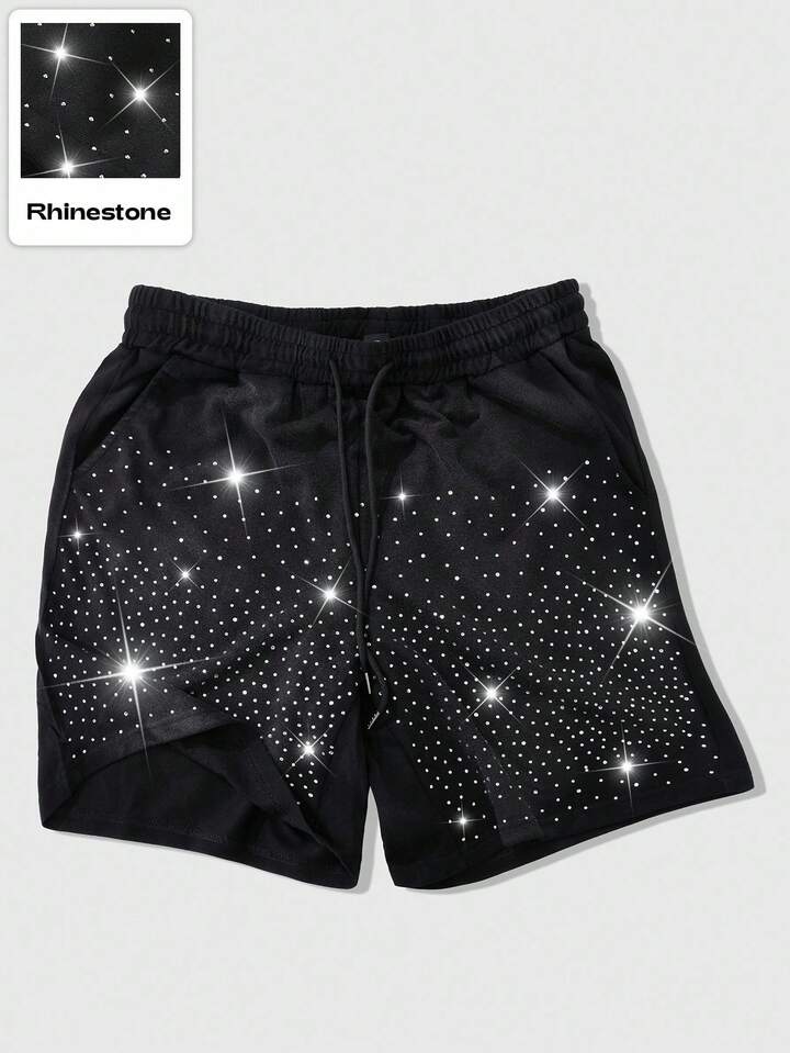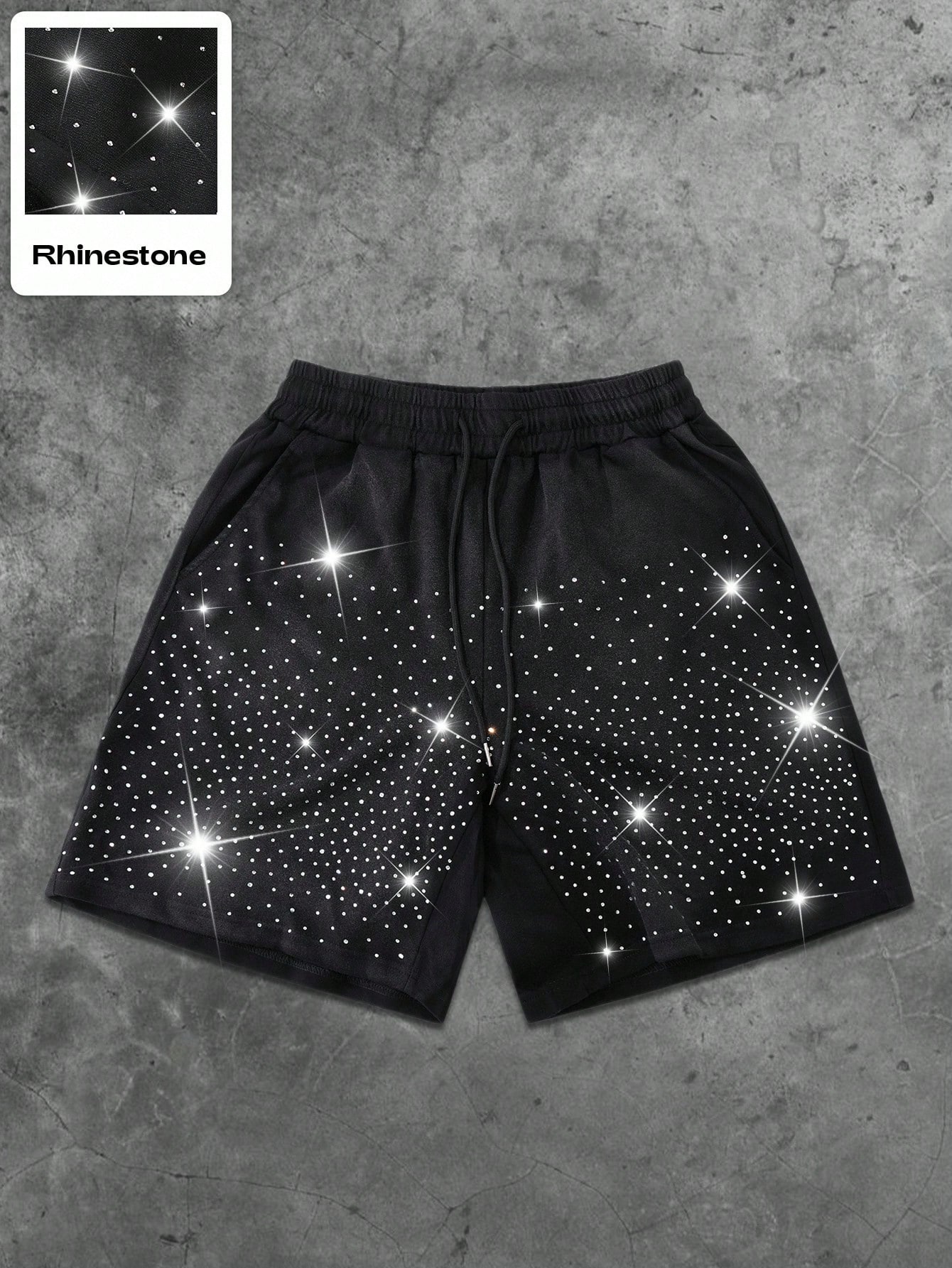 Street Life Short décontracté pour hommes avec imprimé zébré et ornements de strass, convient pour le printemps/été