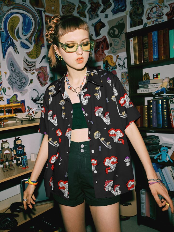 Street Life Chemisier à imprimé champignon à bouton