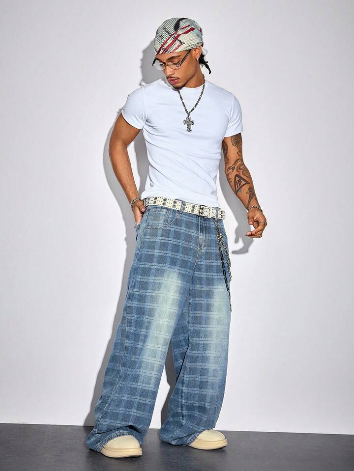 Street Life Jeans amples à jambes larges, boutons et poches, style casual et polyvalent