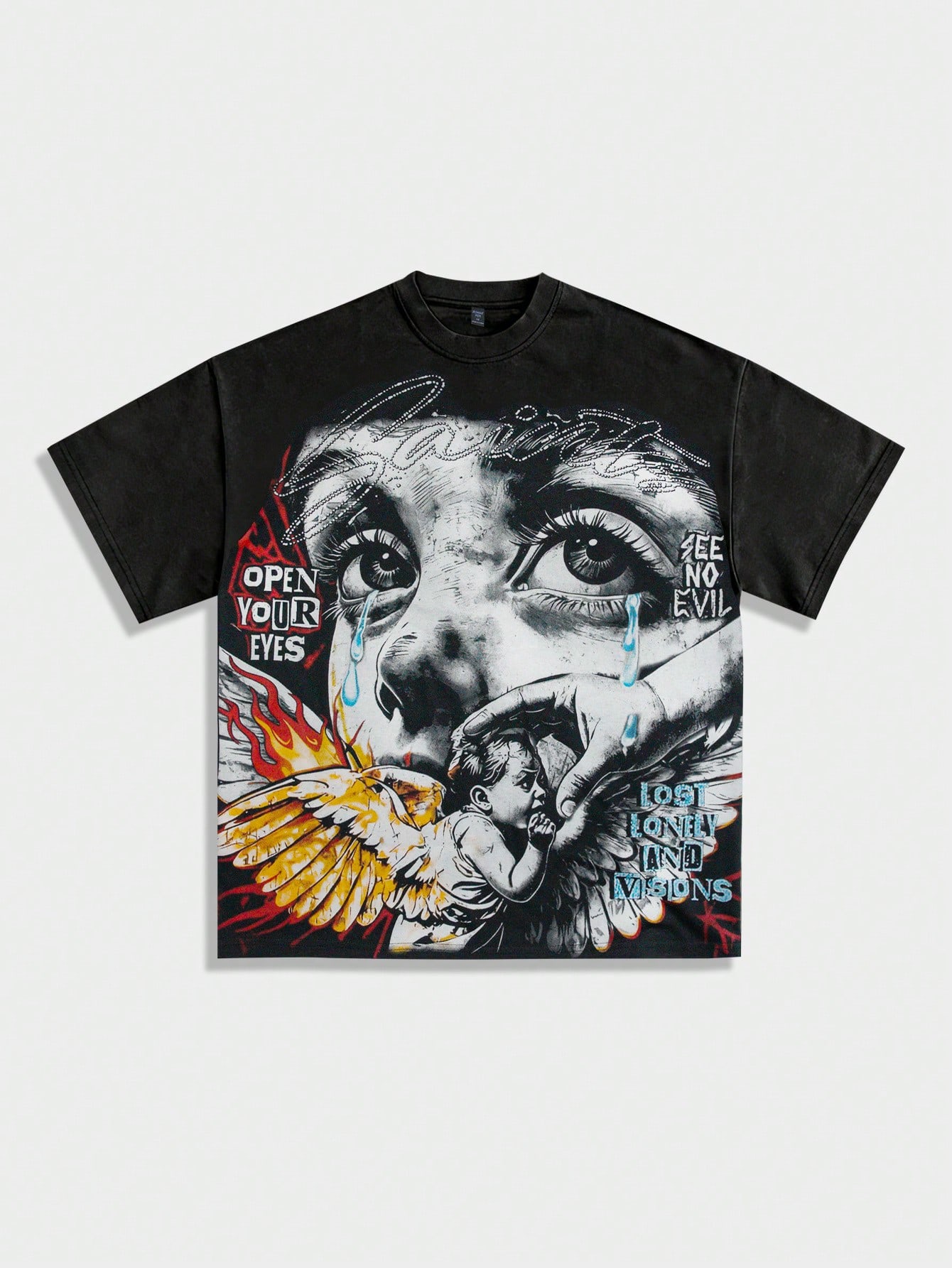 Street Life T-shirt décontracté à col rond et manches courtes, imprimé , été