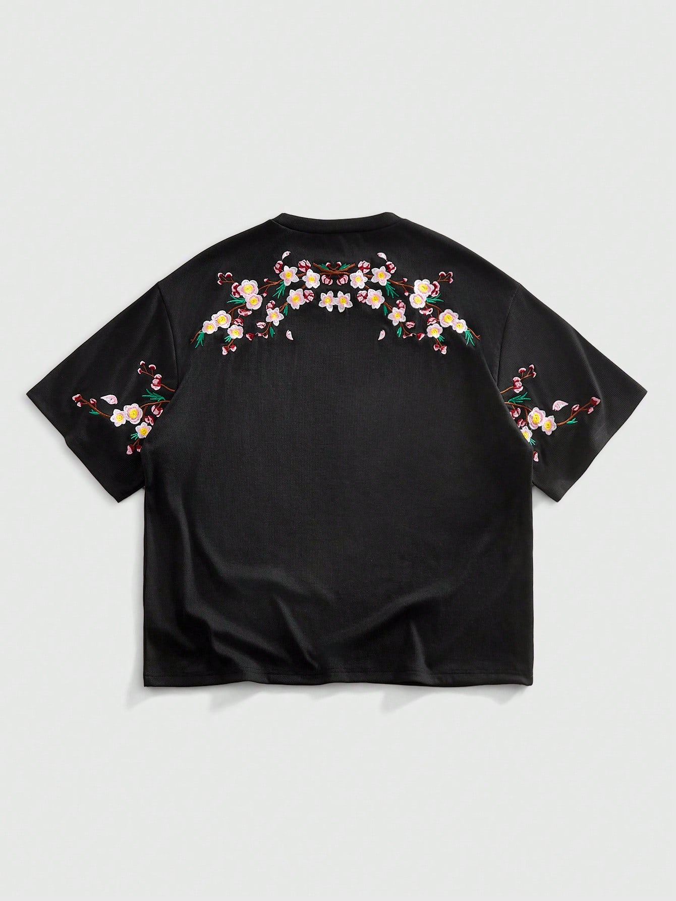 Street Life T-shirt casual à manches courtes, col rond, avec broderie florale pour homme