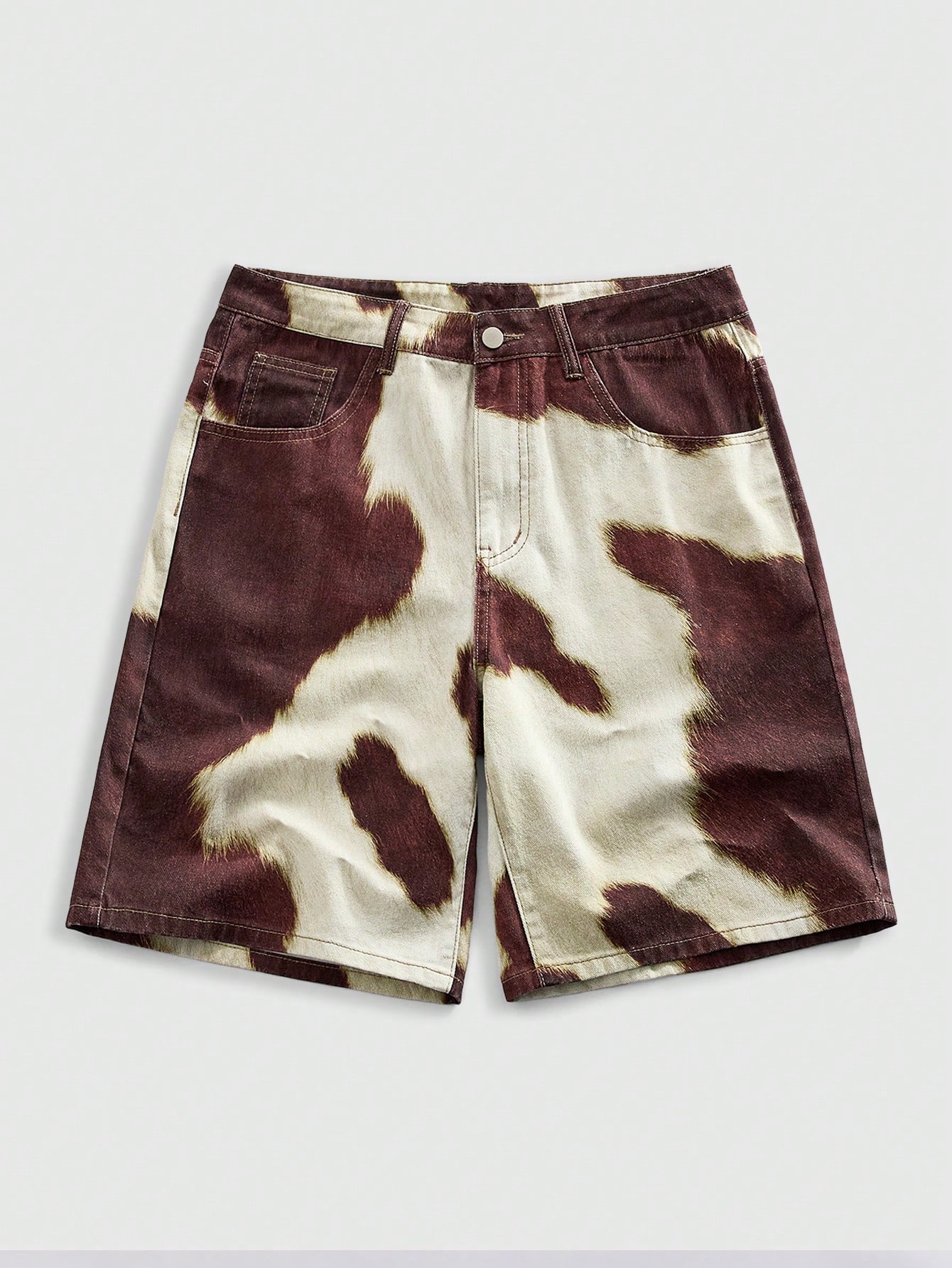 Street Life Short en jean décontracté pour homme, motif vache, style streetwear à la mode pour les vacances d'été