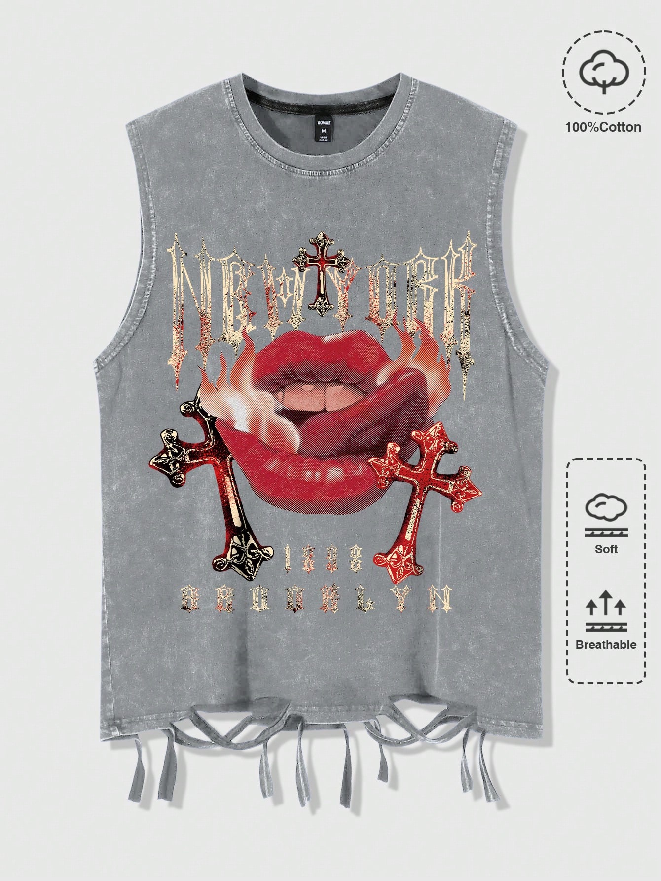 Street Life Débardeur d'été décontracté pour hommes avec imprimé portrait graffiti de rue mode et effet lavé flocon de neige