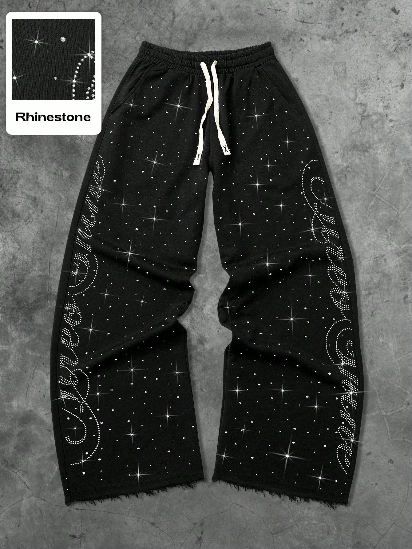 Street Life Pantalon de survêtement unisexe style streetwear avec texte anglais et strass, coupe droite