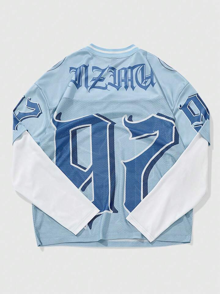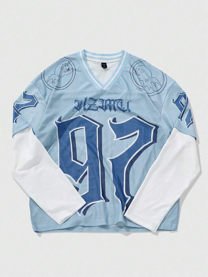 Street Life T-shirt décontracté de mode de rue sportive pour adolescent, imprimé numérique et lettres, col en V 2 en 1, printemps/automne