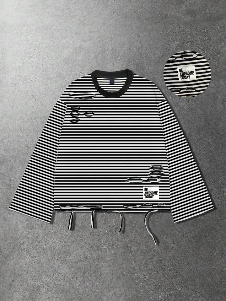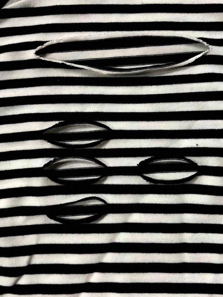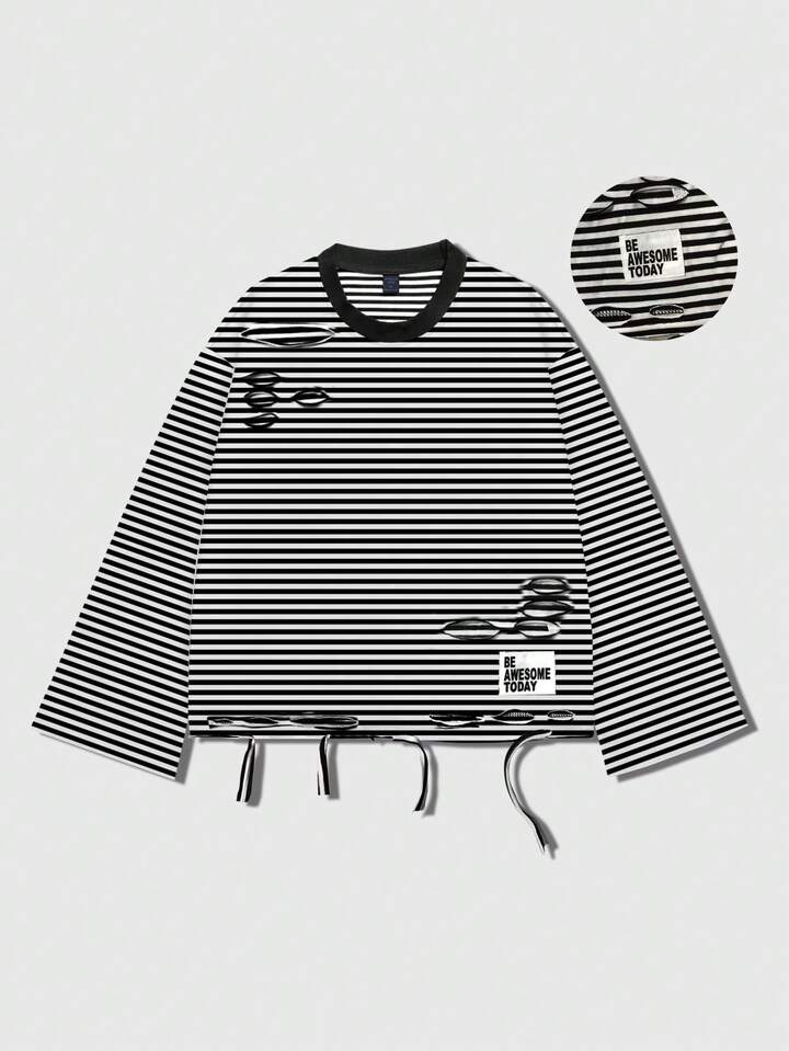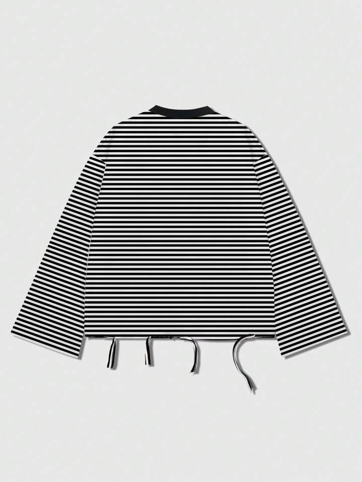 Street Life T-shirt col rond unisexe à rayures noires et blanches
