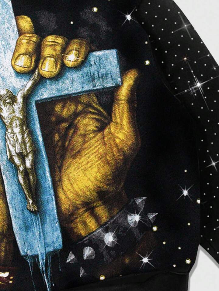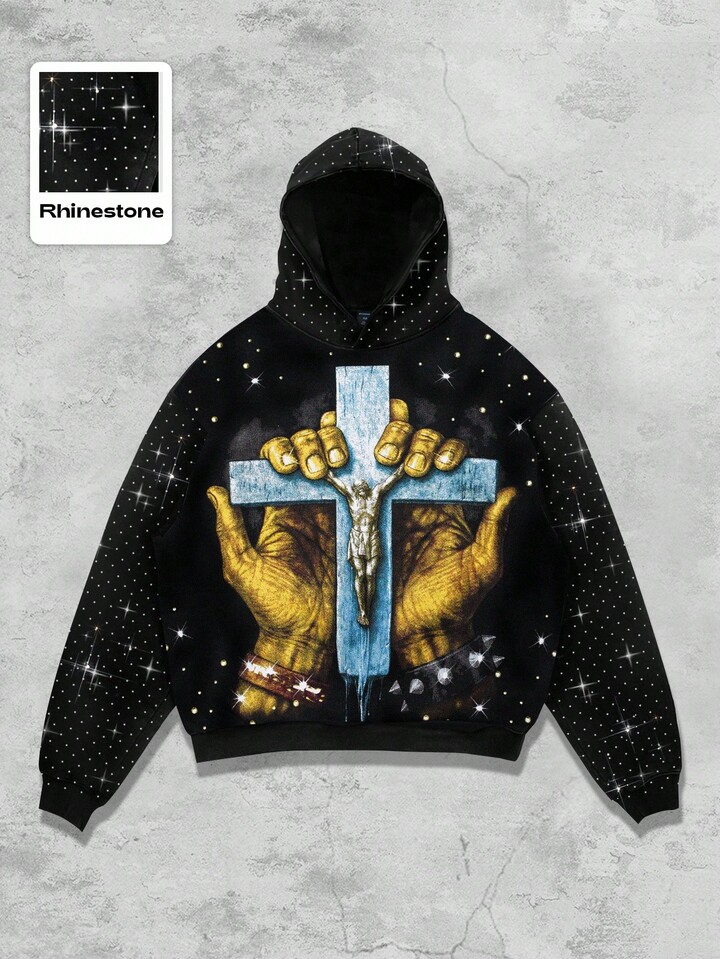 Street Life Sweat-shirt à capuche unisexe à manches longues avec motif croix, style décontracté punk de rue, automne/hiver