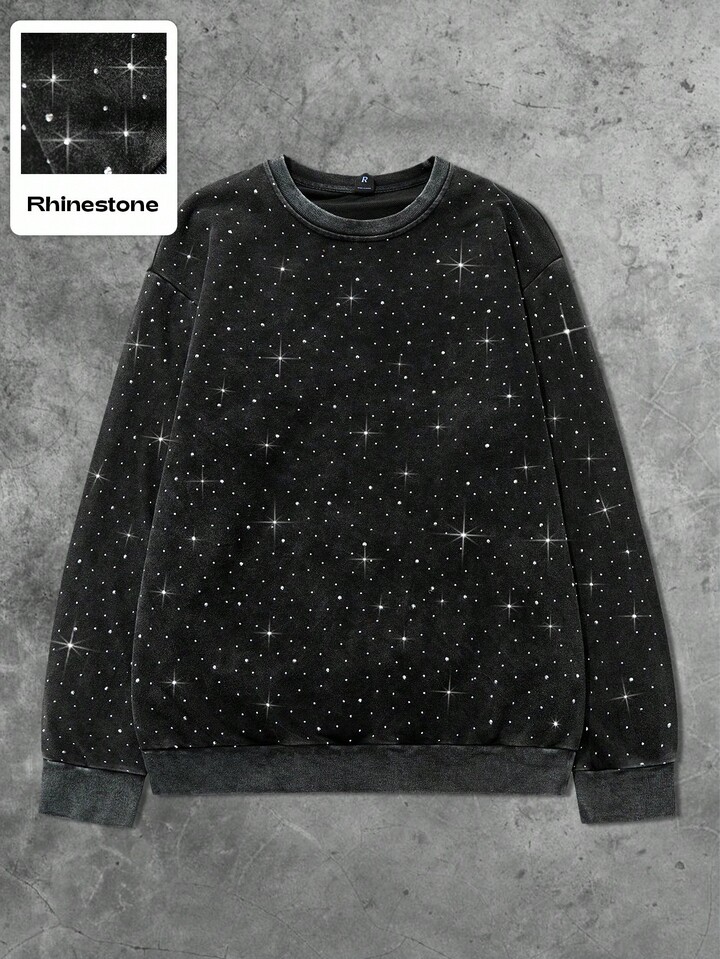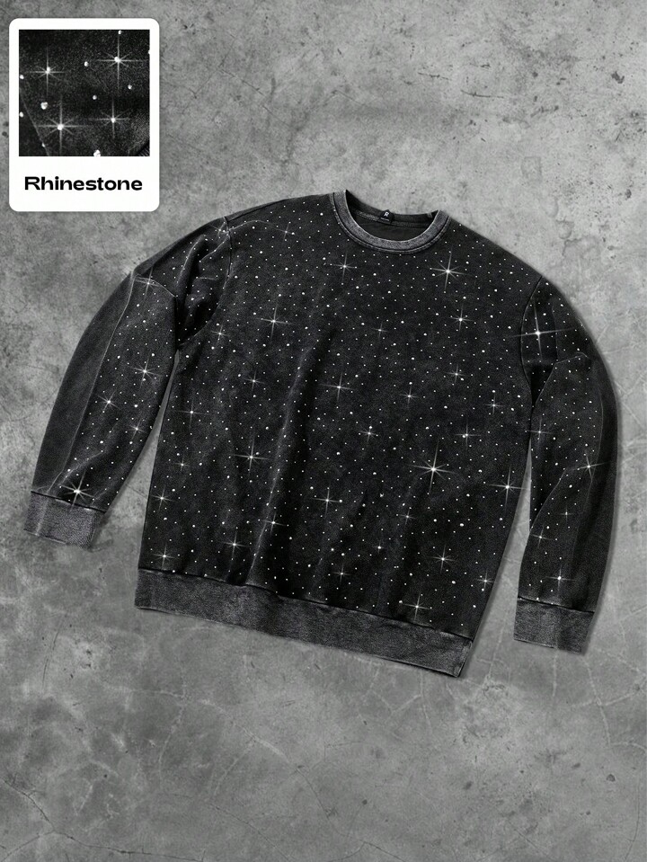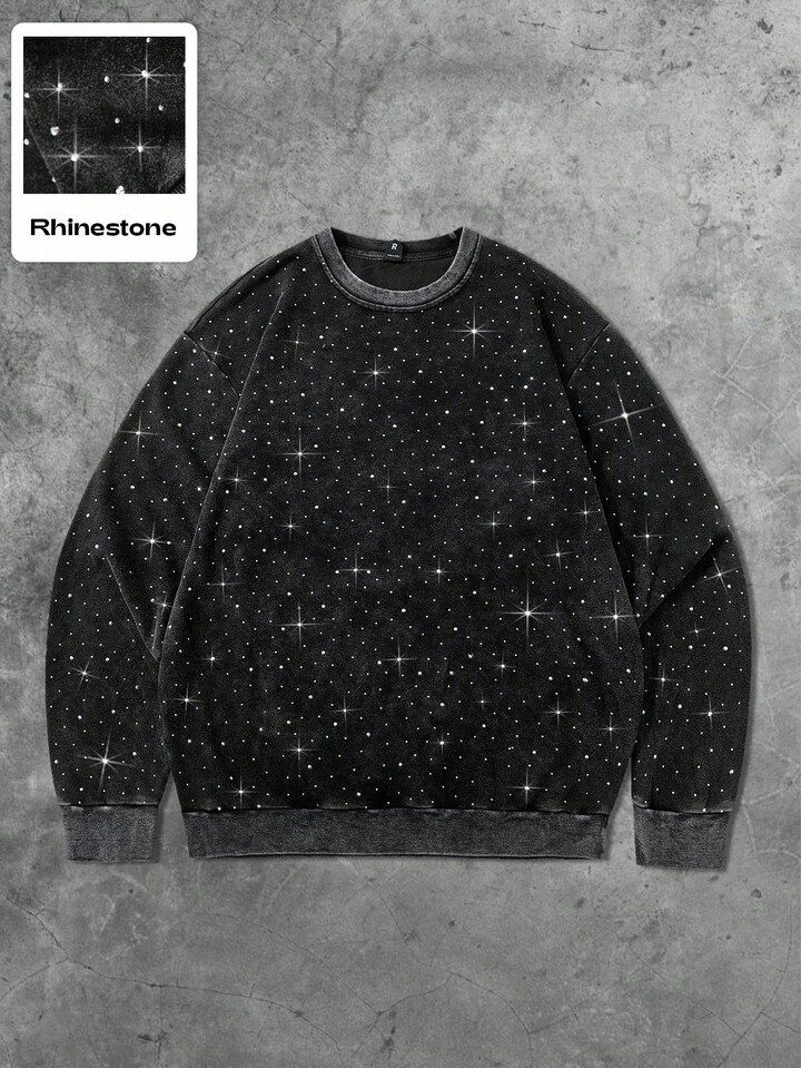 Street Life Sweat-shirt col rond unisexe à effet strass, style de rue américain