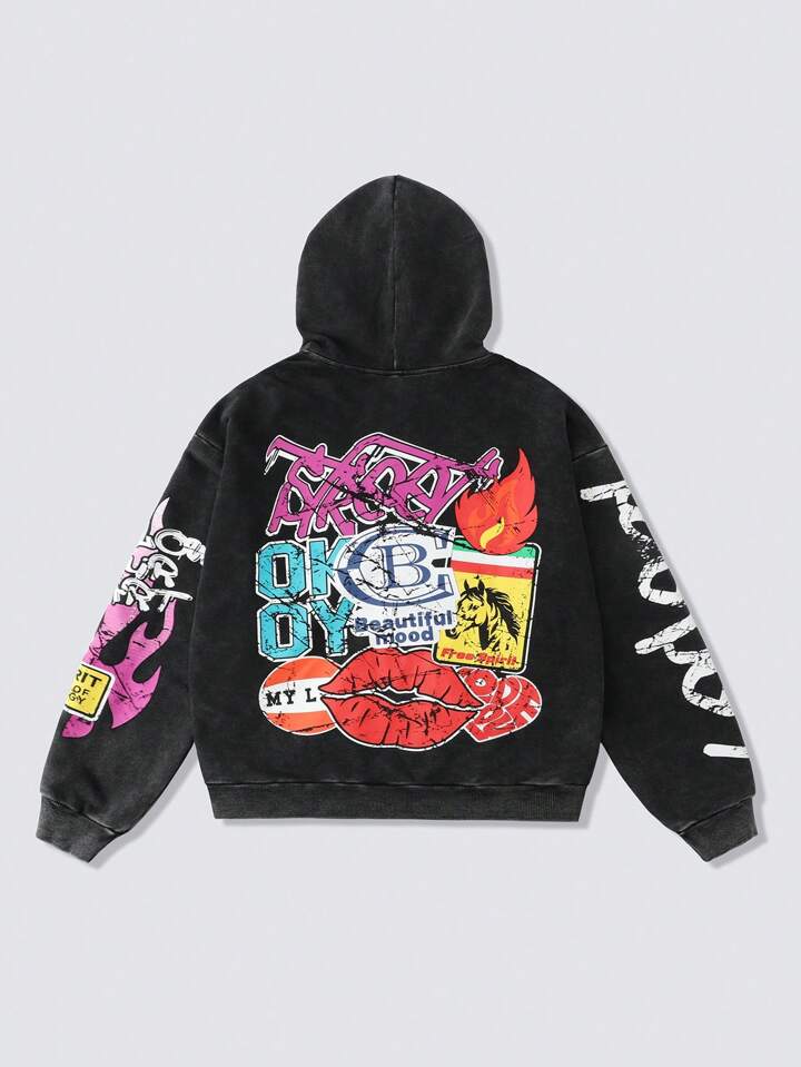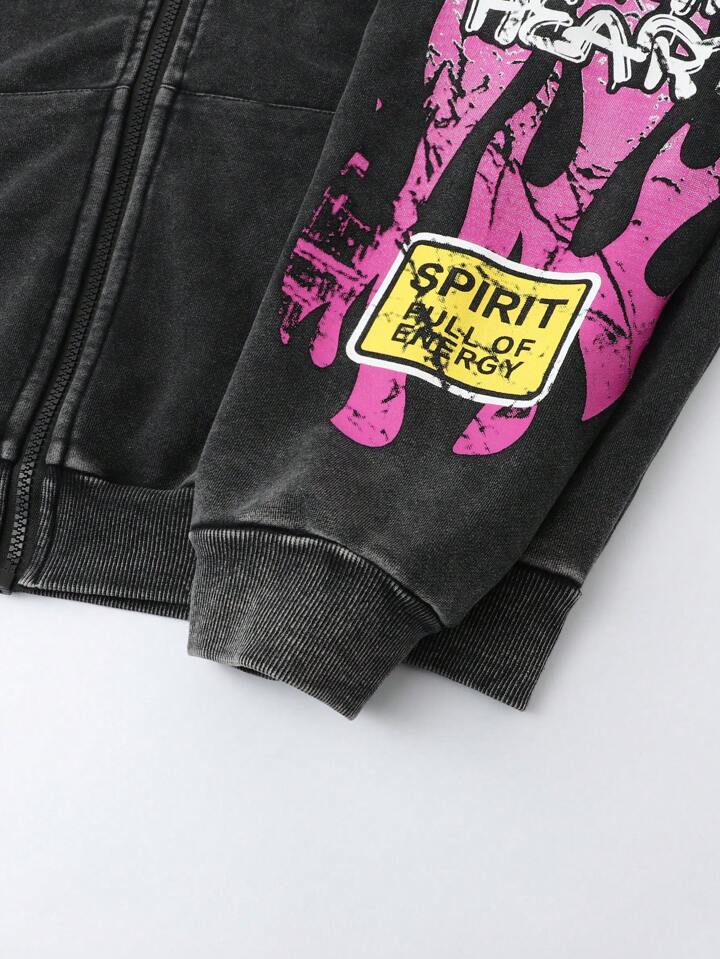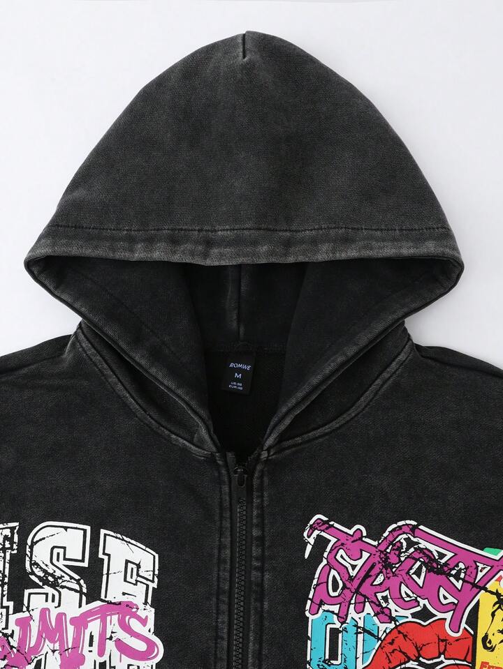 Street Life sweat-shirt à capuche décontracté pour hommes de style vintage lavé avec fermeture éclair