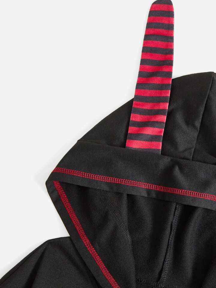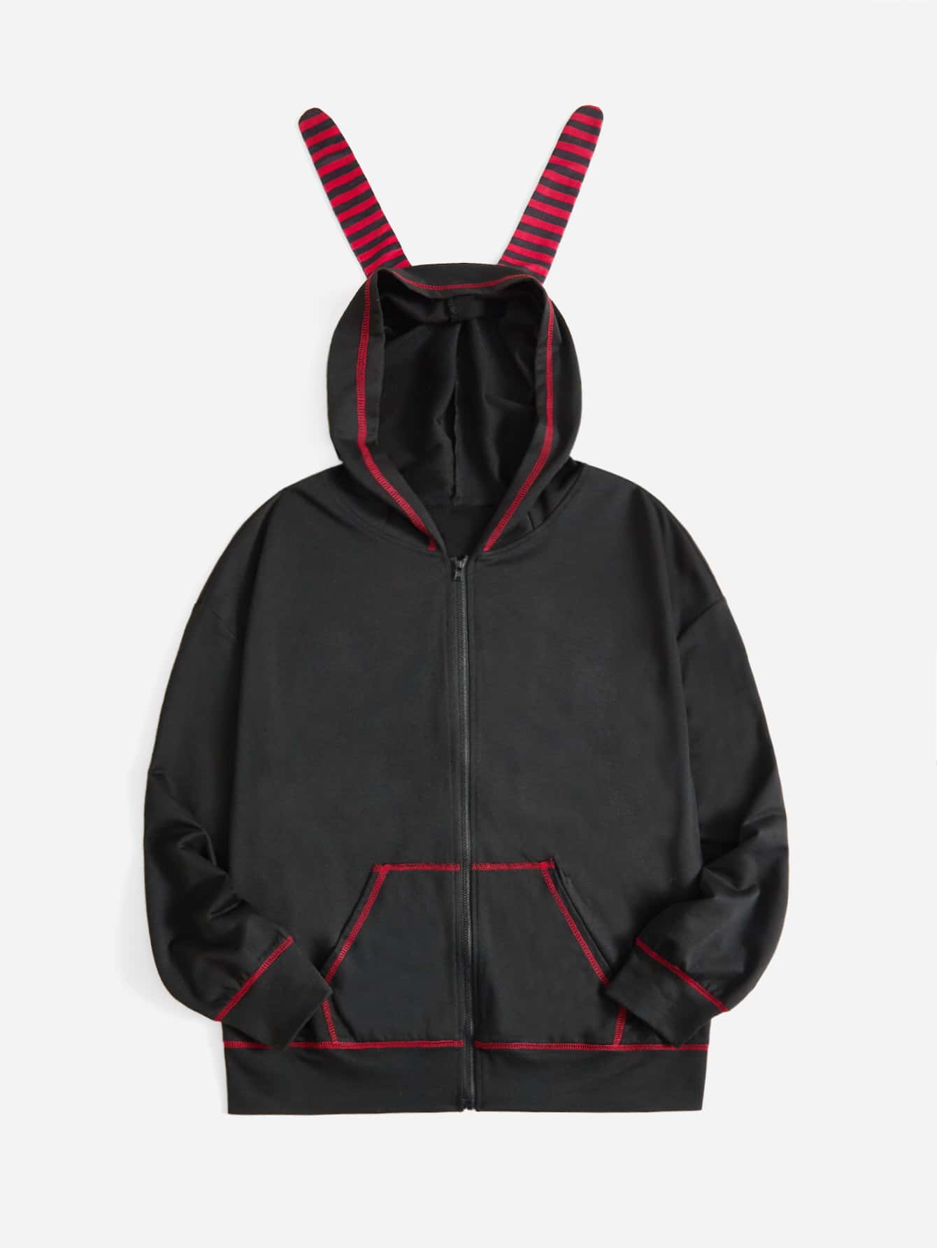 Sweat-shirt à capuche zippé à rayures oreille patch