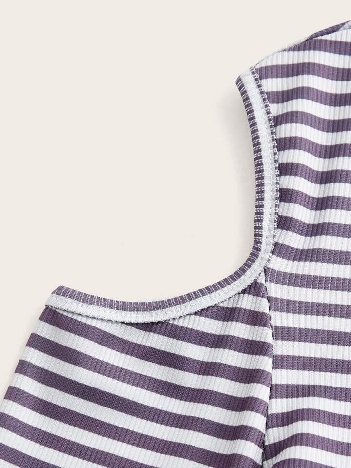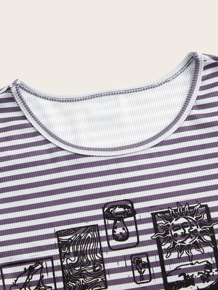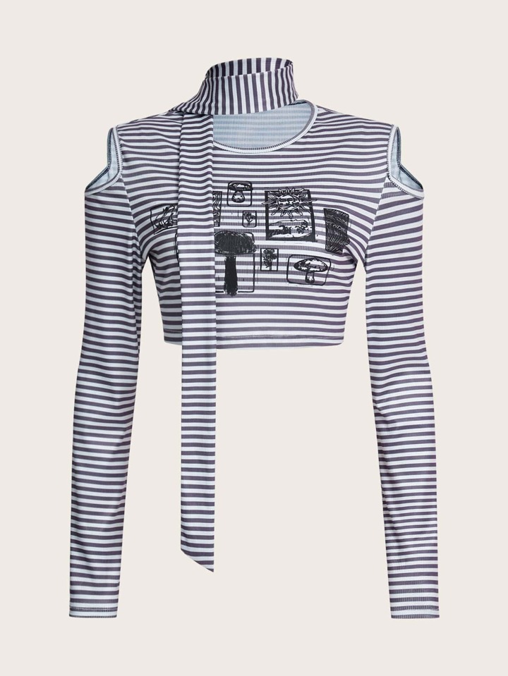 T-shirt court à rayures champignon à épaules dénudées