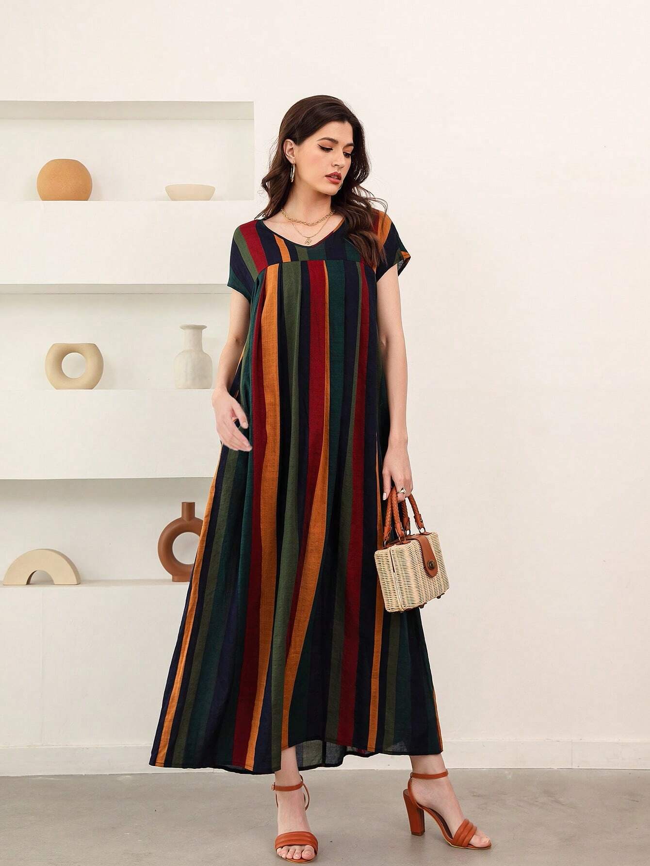 Robe longue avec rayures