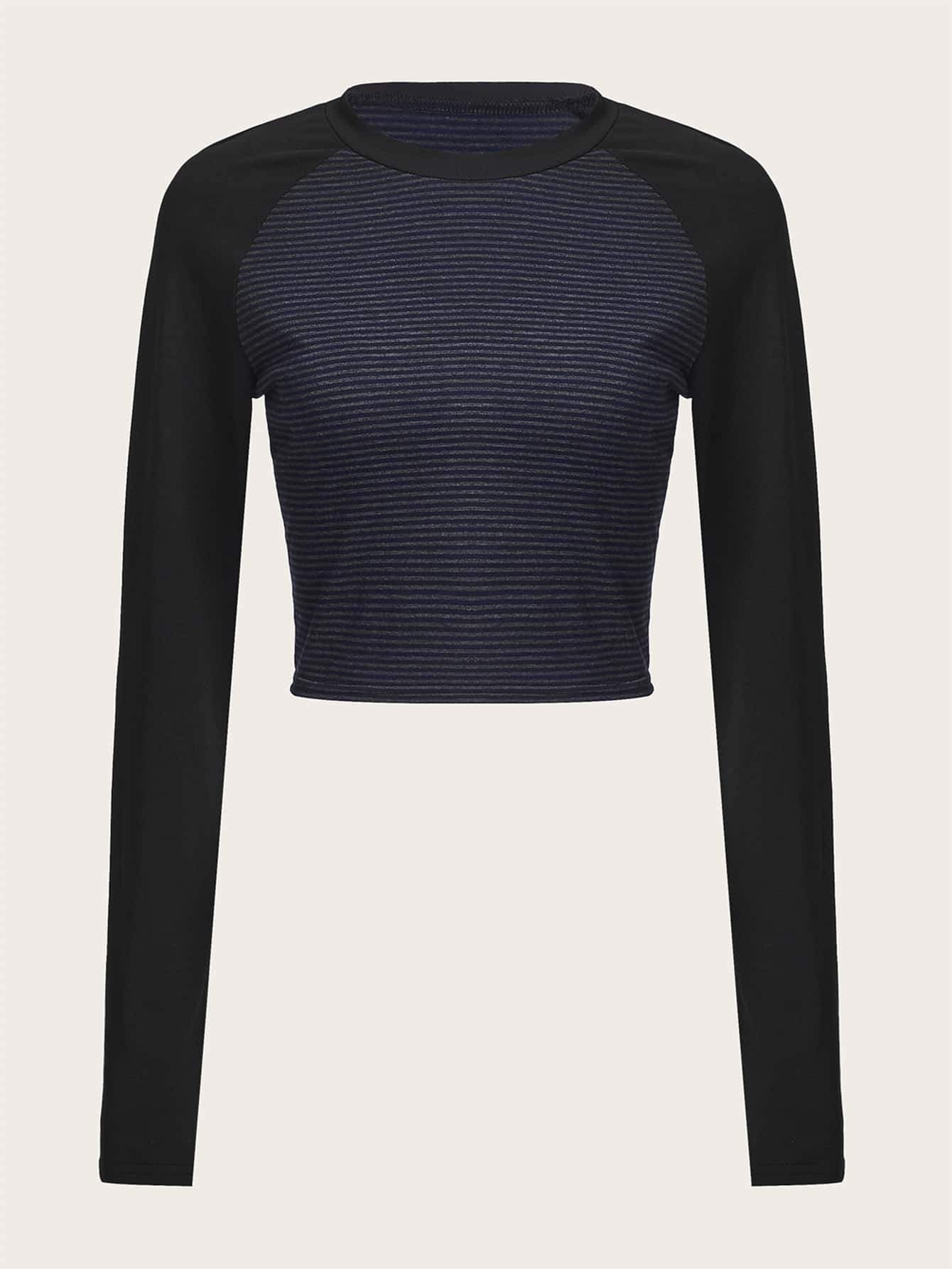 T-shirt court à rayures manches raglan