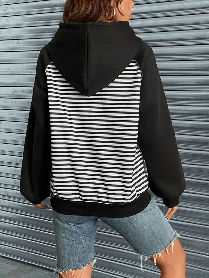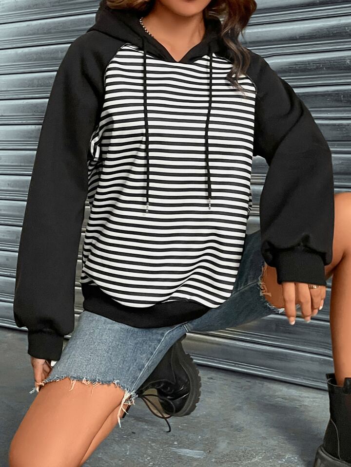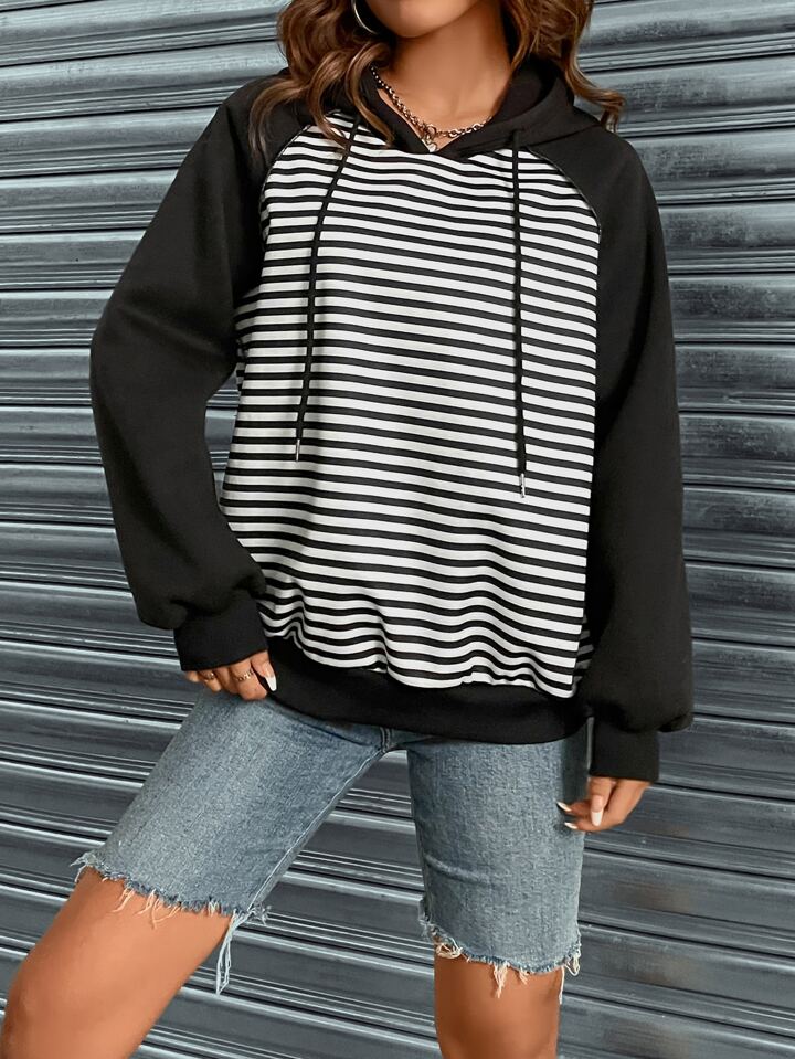Sweat-shirt à capuche à rayures manches raglan à cordon