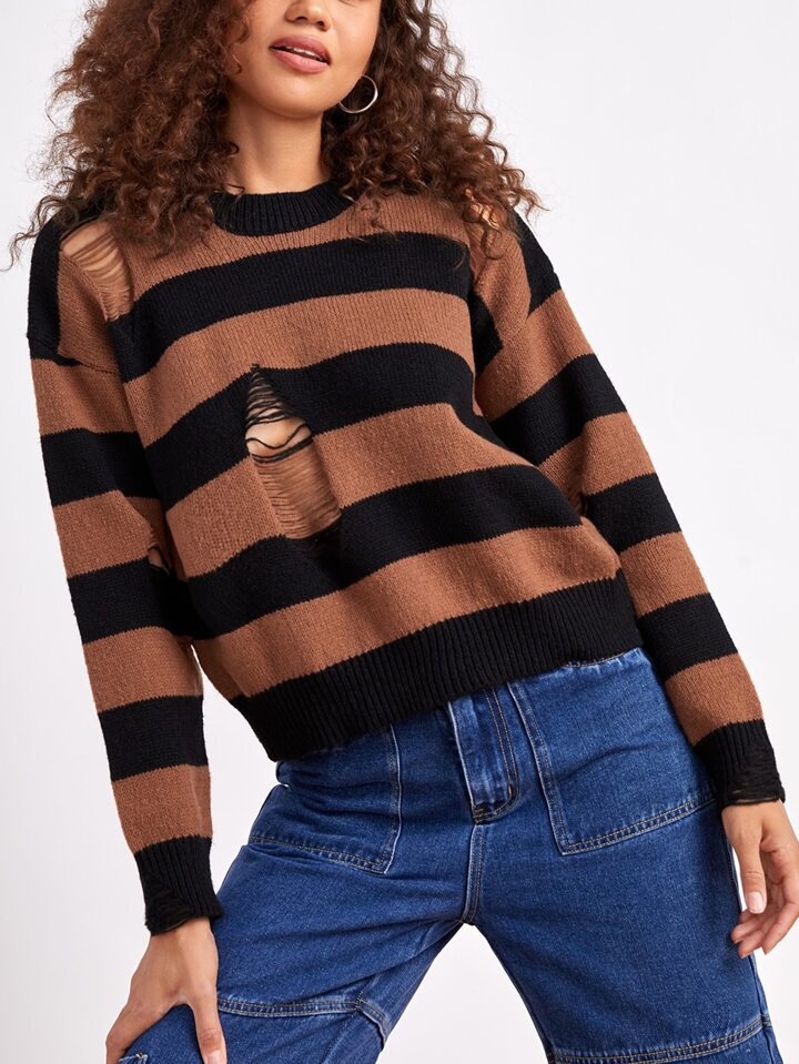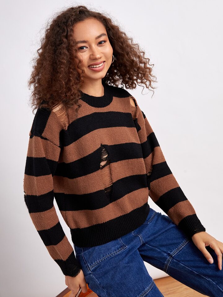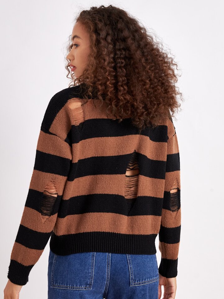 Pull court à rayures déchiré