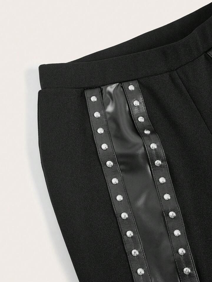Pantalon Évasé Clouté en PU