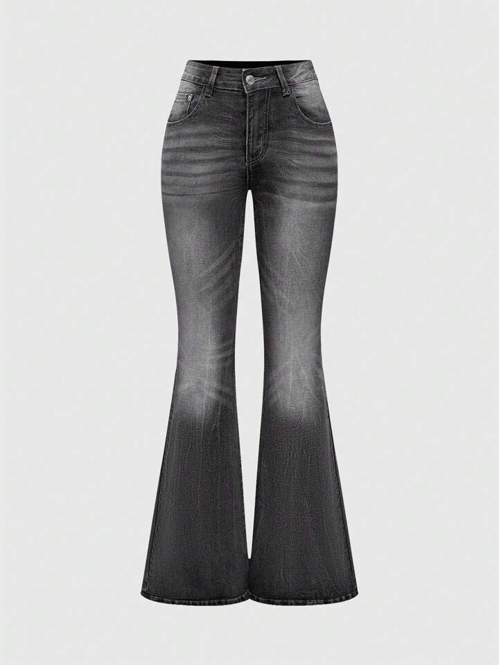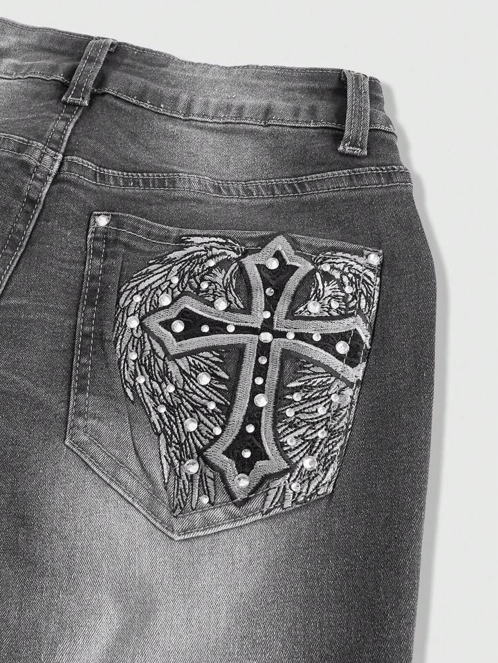 Grunge Punk Pantalon évasé sexy avec sous-culture, rivets, ailes croisées, broderie et strass