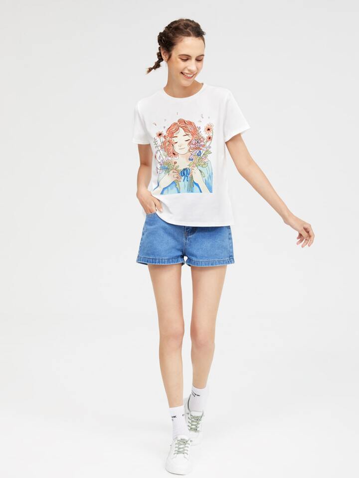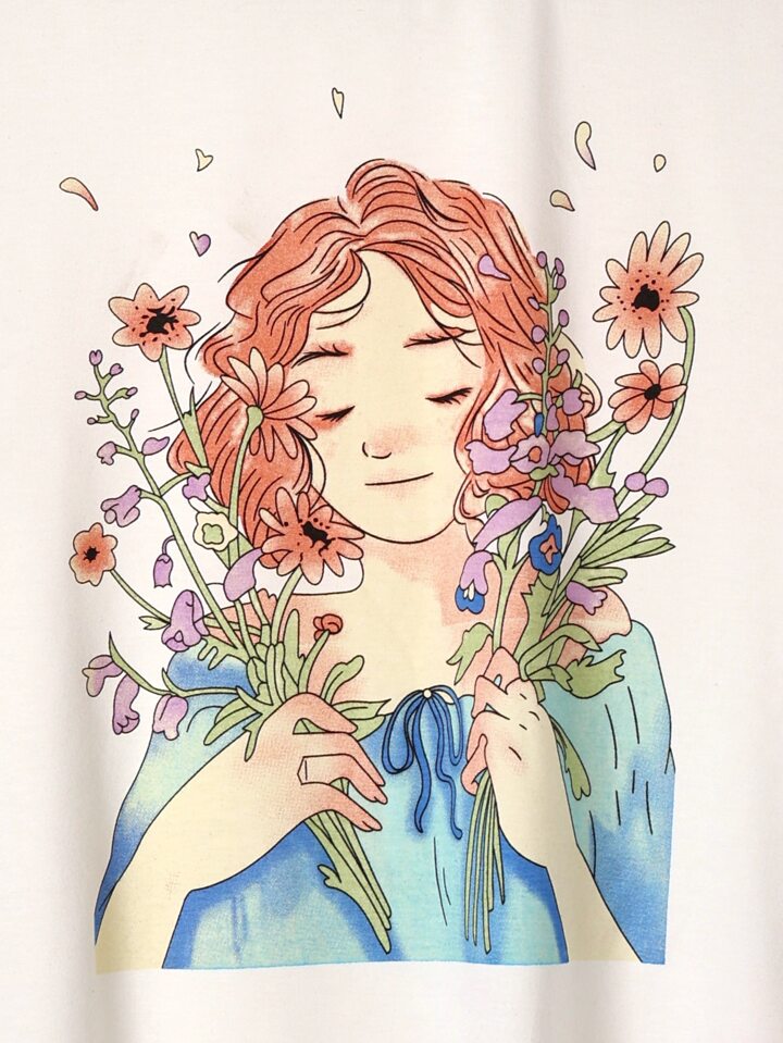 Suki T-shirt à motif figure et fleuri