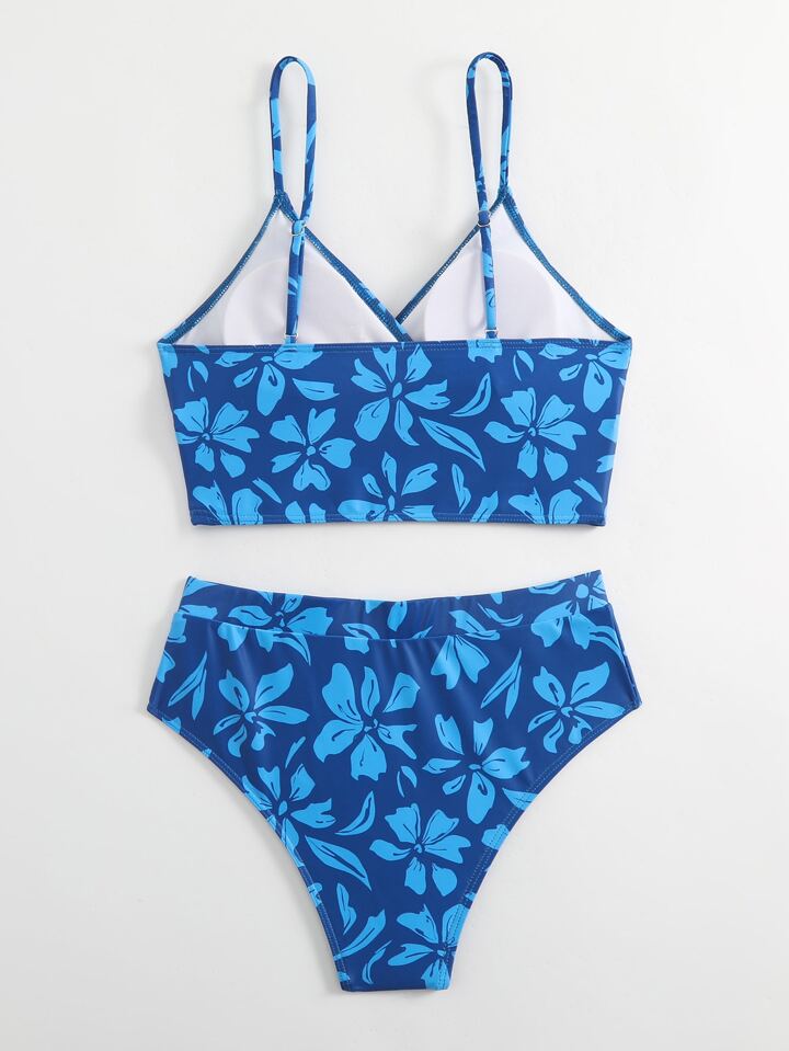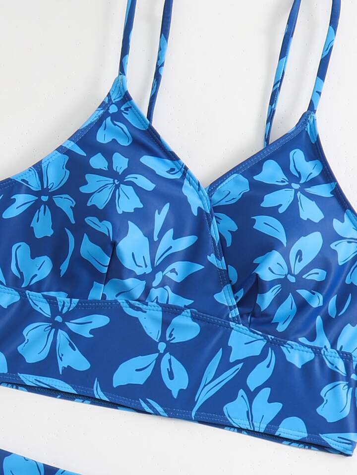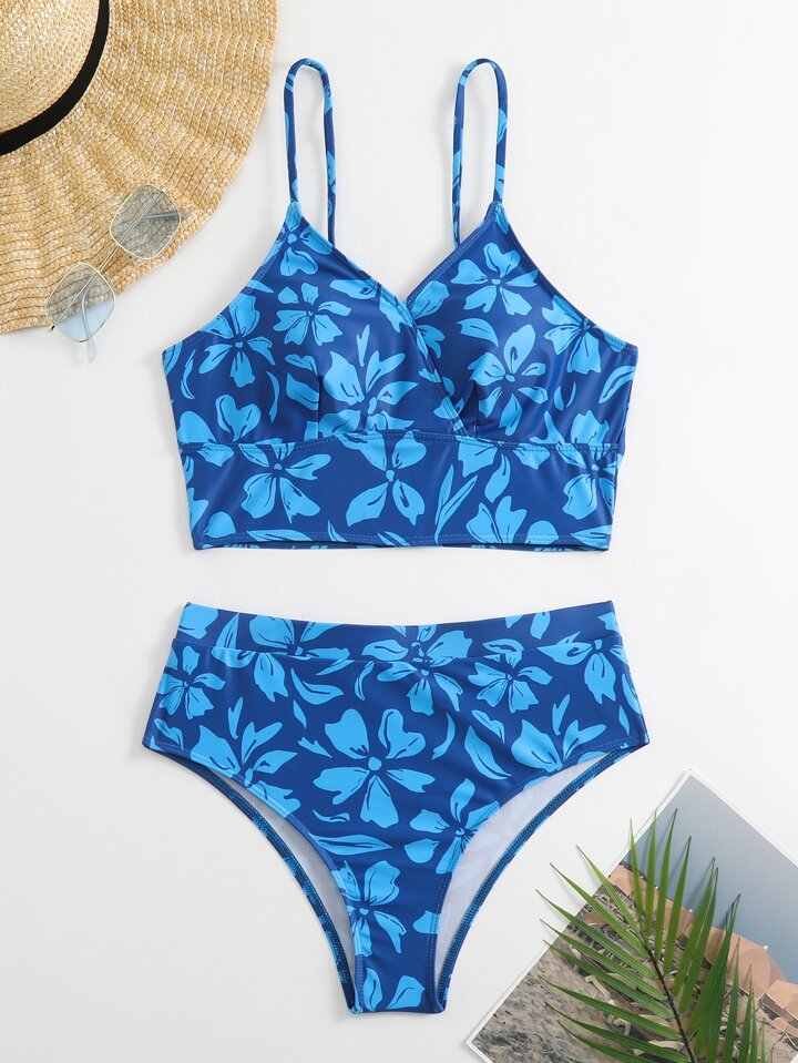 Ensemble de Bikini imprimé Floral de plage d'été, Top court enveloppant sur le devant et contrôle du ventre, bas taille haute, Bikini 2 pièces
