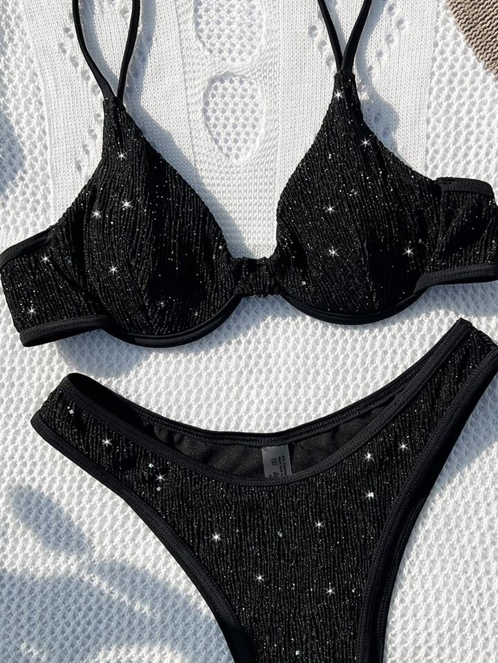 Ensemble de Bikini à paillettes de plage d'été, Top à armatures et bas taille haute, Bikini 2 pièces