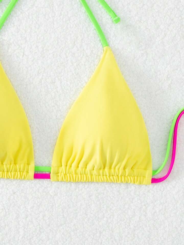 Haut de bikini triangle ras-du-cou blocs de couleurs néon pour plage d'été