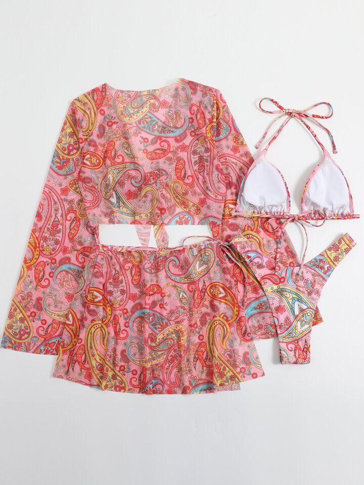 Ensemble bikini triangle ras-du-cou à imprimé paisley pour plage d'été avec ensemble de cache-maillots