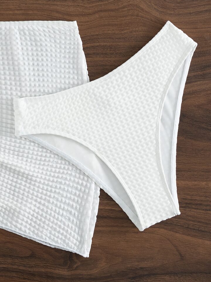 Ensemble de Bikini de plage d'été, Top de Bikini licou, jupe de plage froncée avec cordon de serrage, 3 pièces