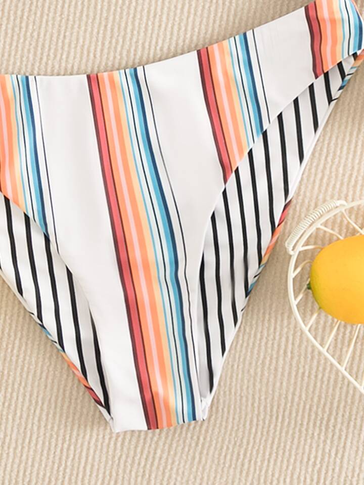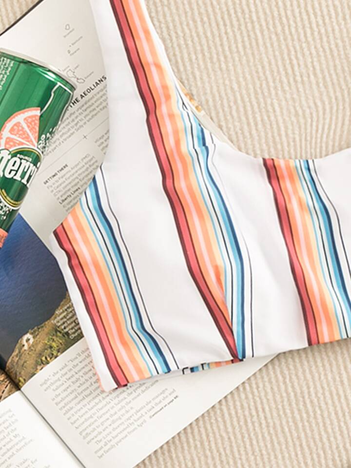 Ensemble de bikini à rayures top sans manches & Bas hipster 2 pièces Maillot de bain