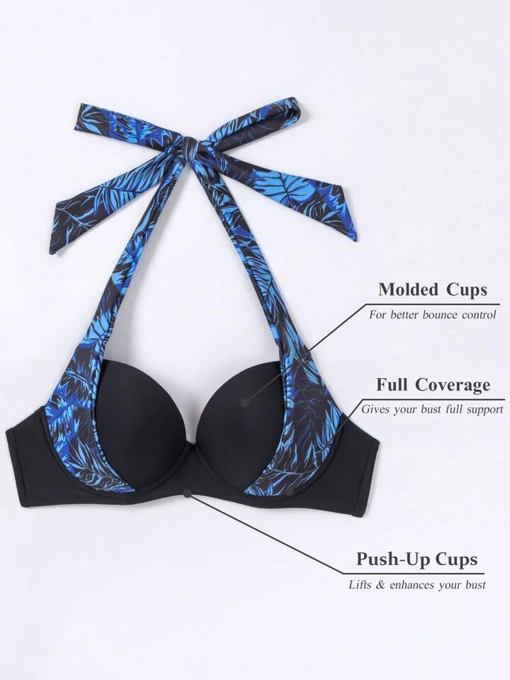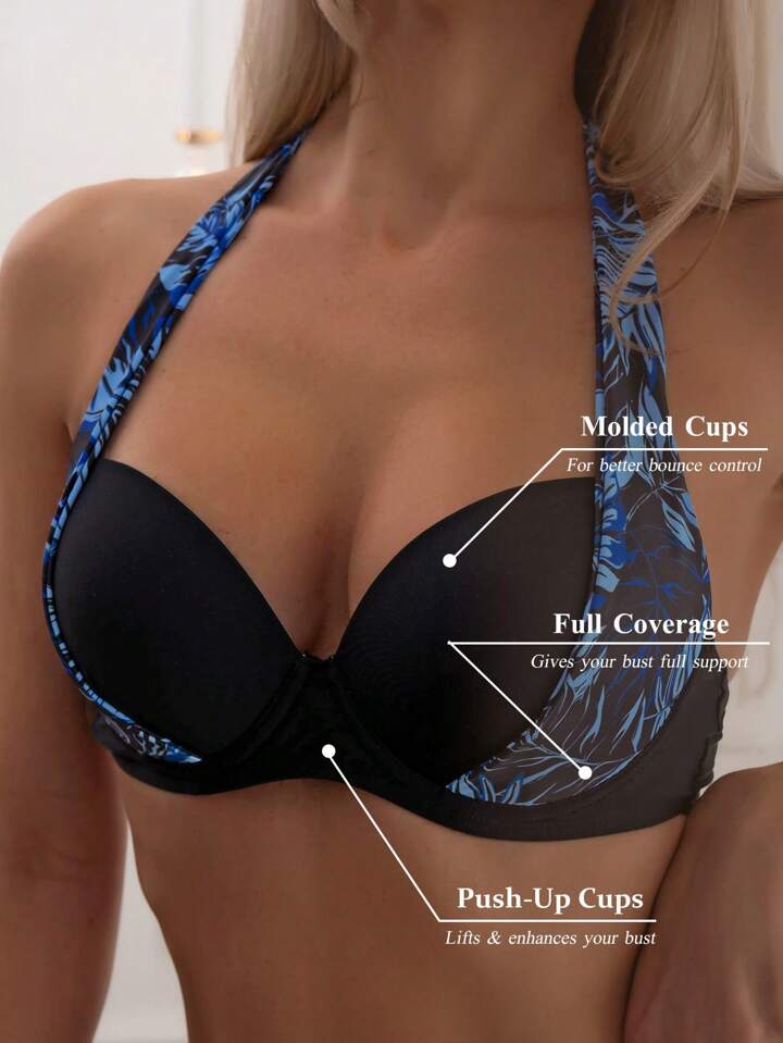 Haut De Bikini Imprimé Tropical Ras-Du-Cou Push-Up