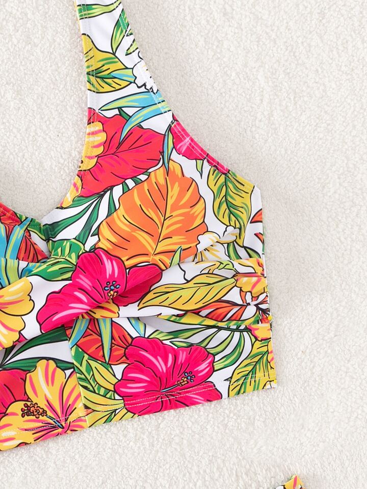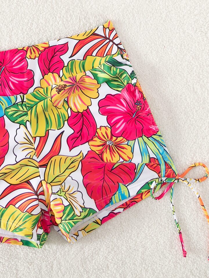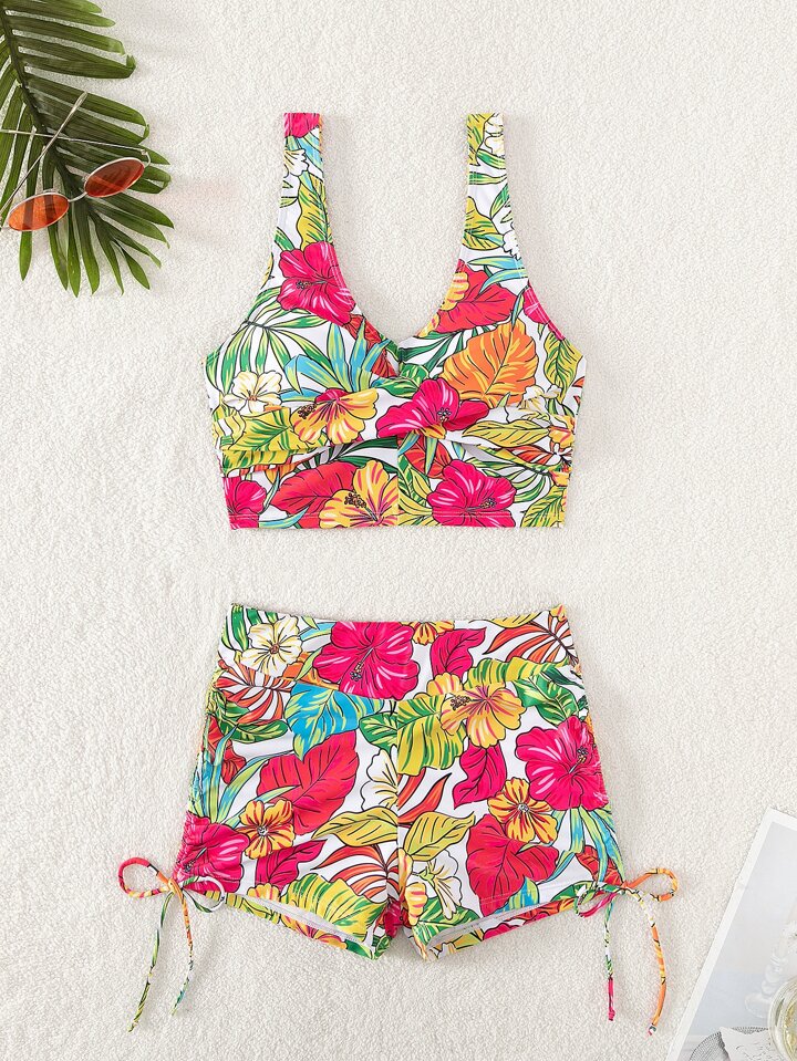 Ensemble de tankini à imprimé tropical croisé top sans manches & Short à cordon 2 pièces Maillot de bain