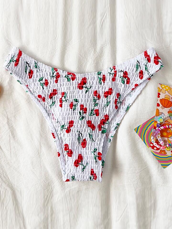 Bas de bikini sexy smocké à l'imprimé cerise d'été