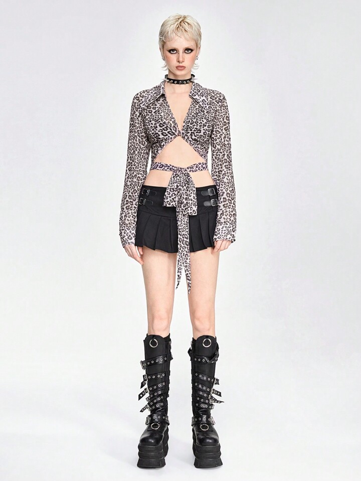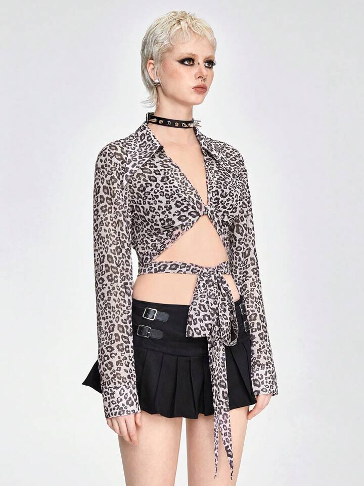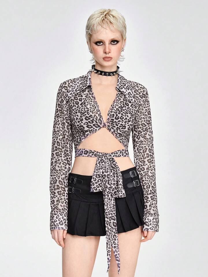 Haut à manches longues et torsadées coupe cropped en chiffon imprimé léopard à la mode pour l'été