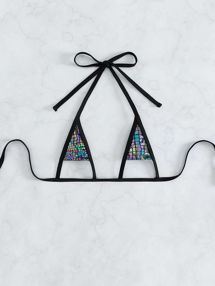 Top de bikini triangle micro découpé holographique d'été