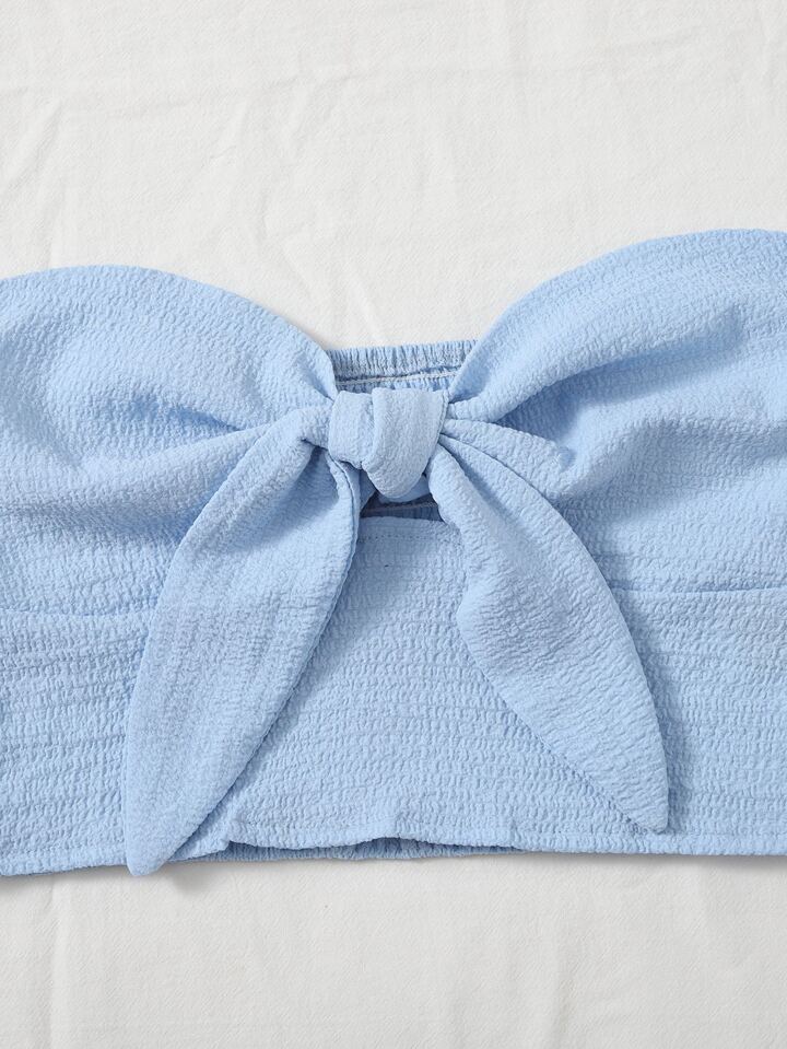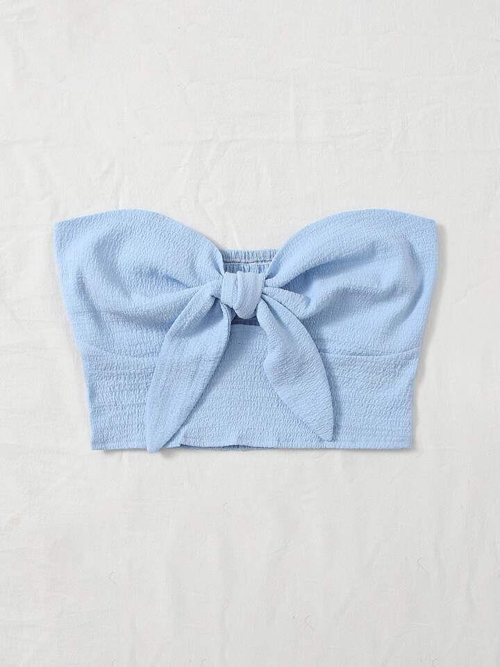 Top bandeau d'été avec nœud devant et dos froncé