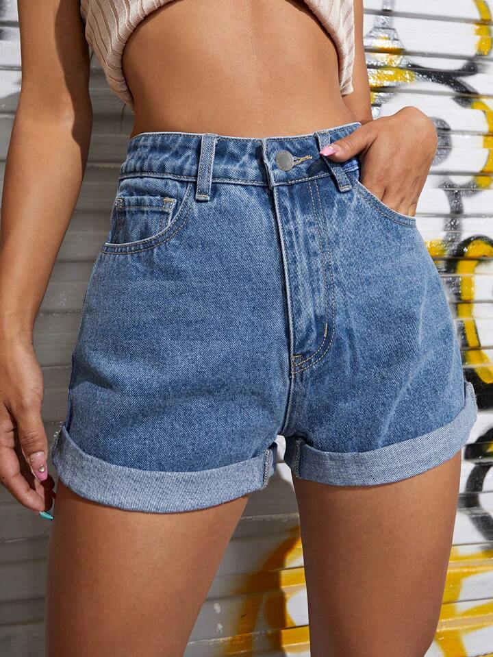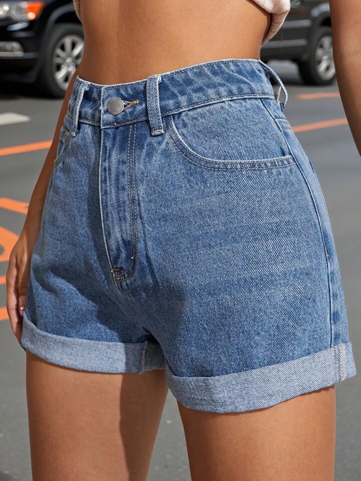 Shorts en jean avec ourlet retroussé, motif graphique, tenue d'été
