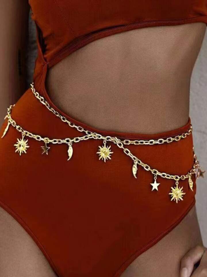 Ceinture à chaîne soleil à breloque lune
