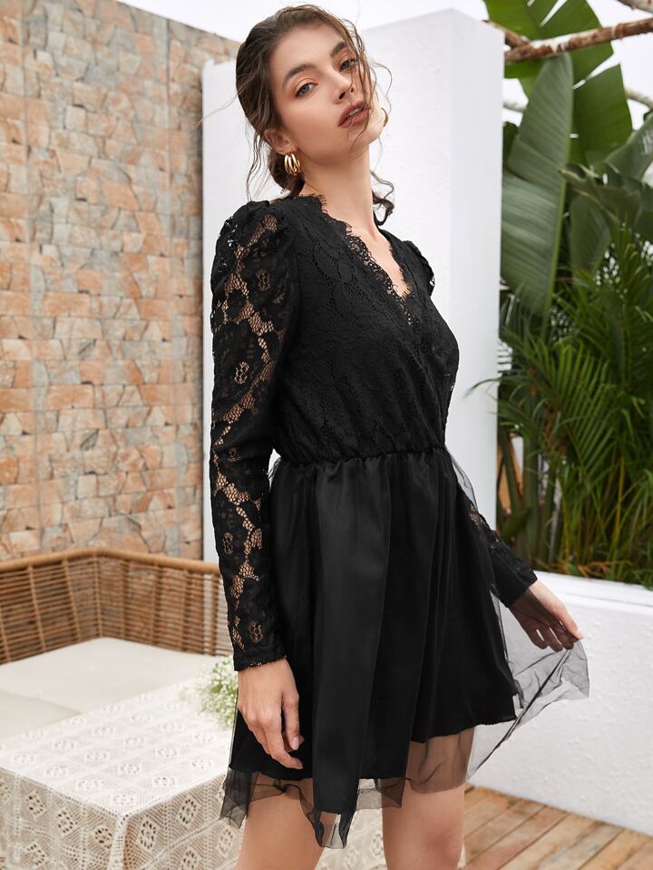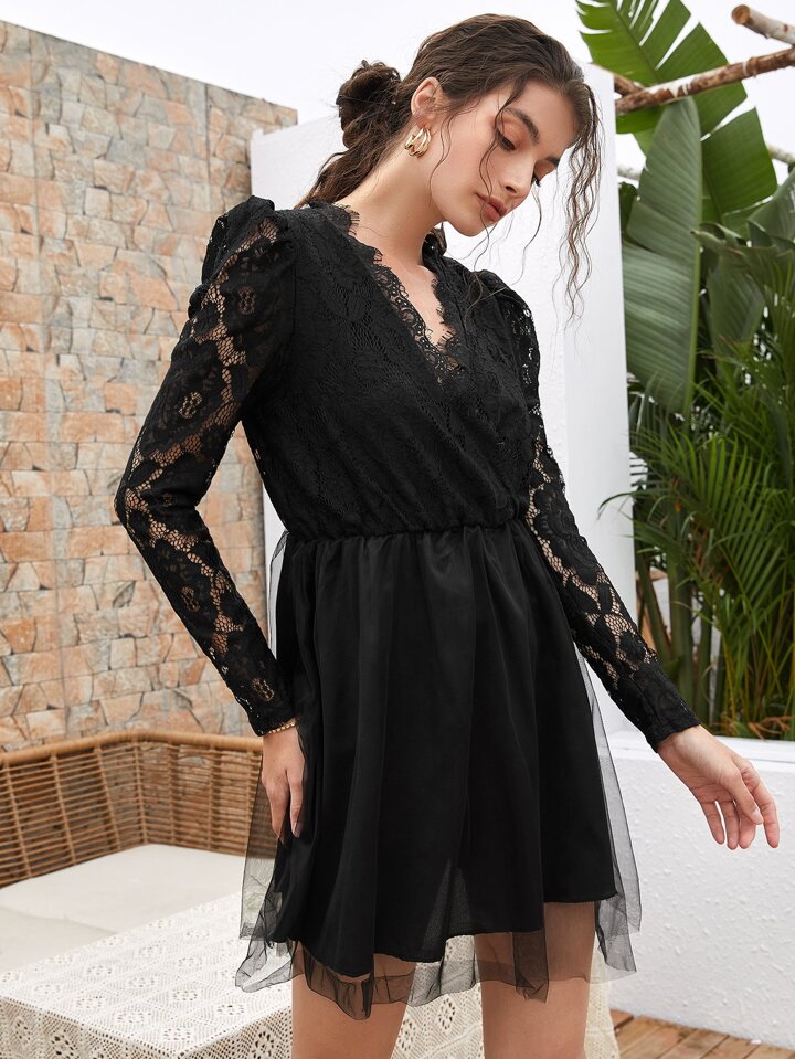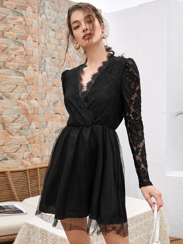 Robe cache-cœur en tulle avec dentelle