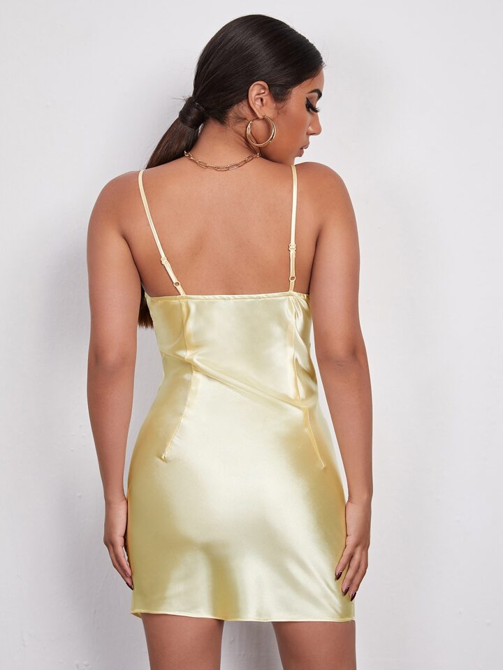 Robe en satin fendue avec ruchés