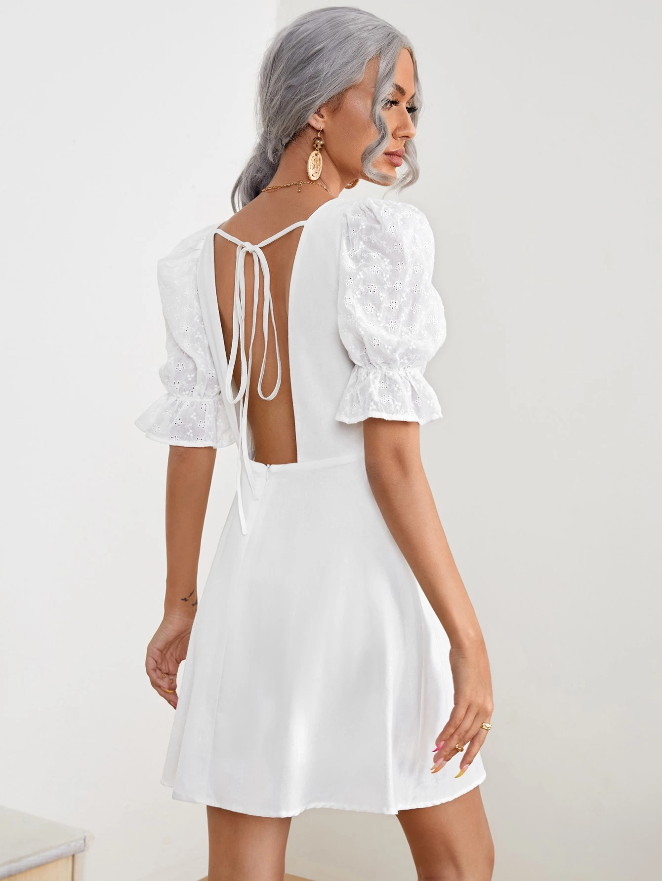 Robe à encolure de cœur à manches évasées dos-nu à nœud