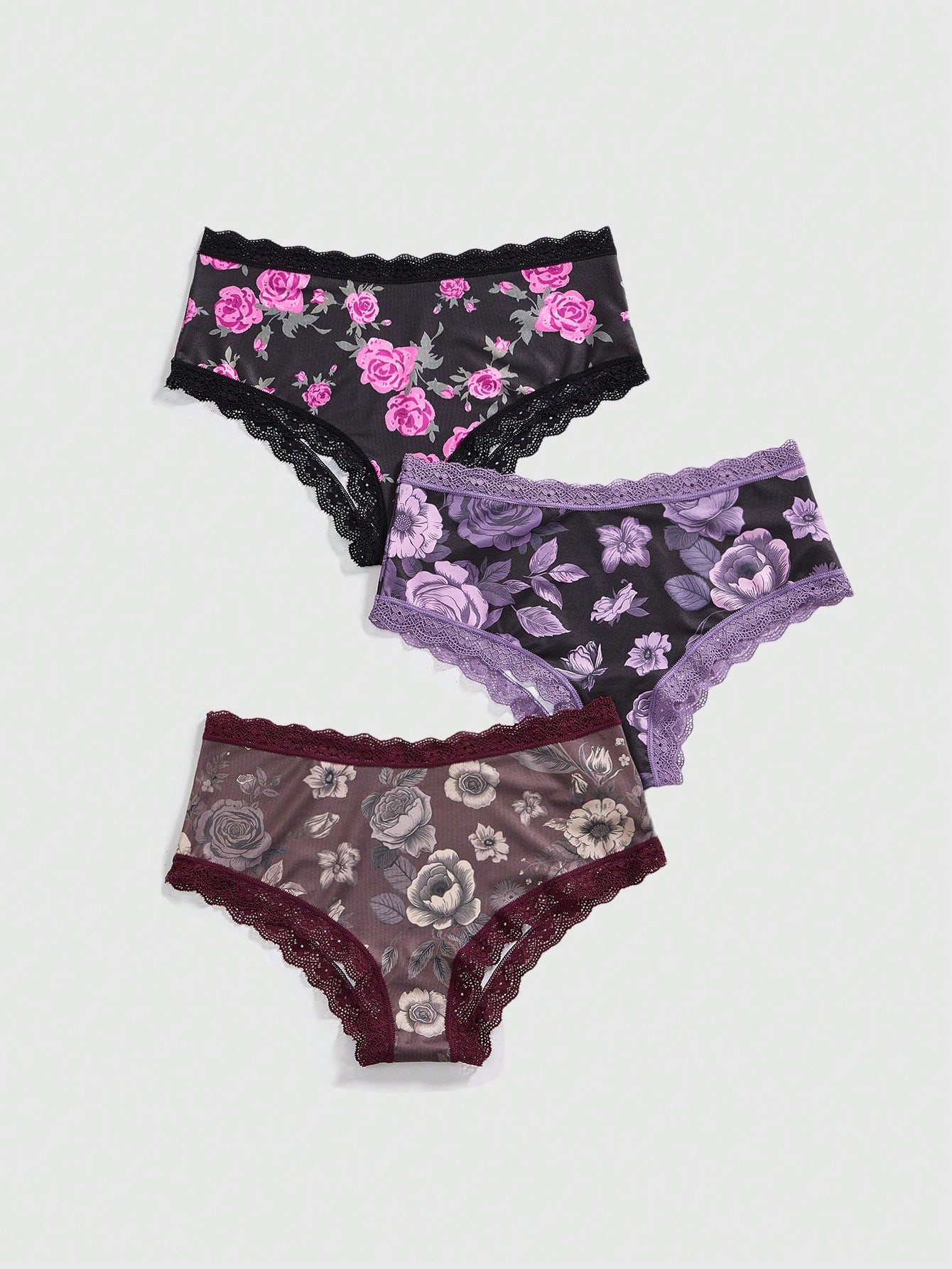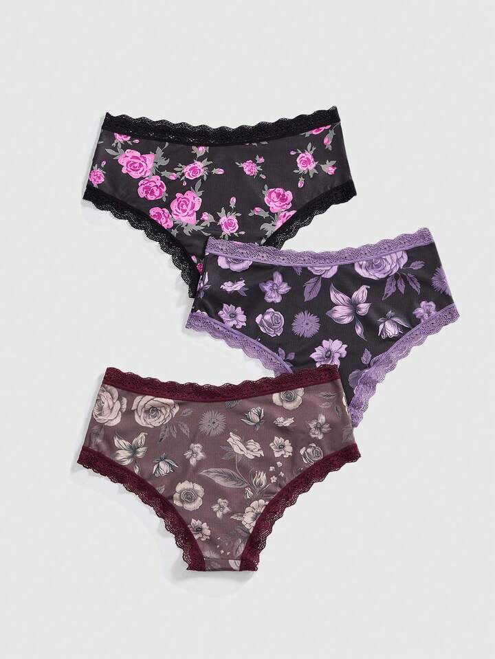 Sweetness 3 pièces/Set Ensemble de culotte avec garniture en dentelle rose romantique