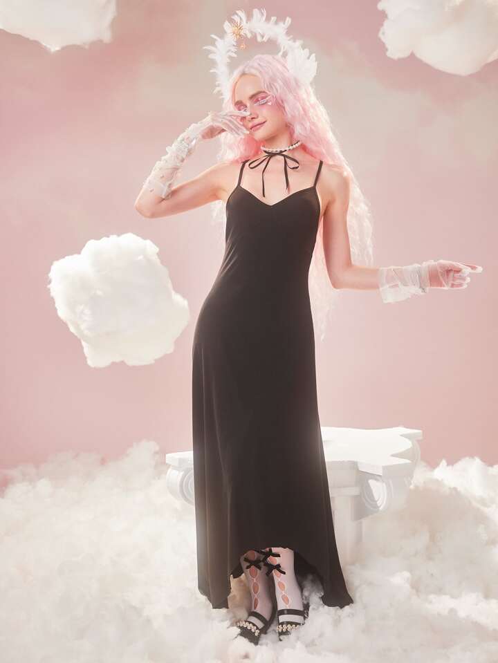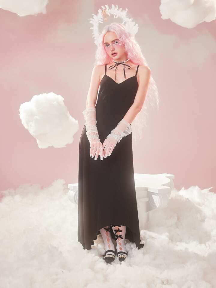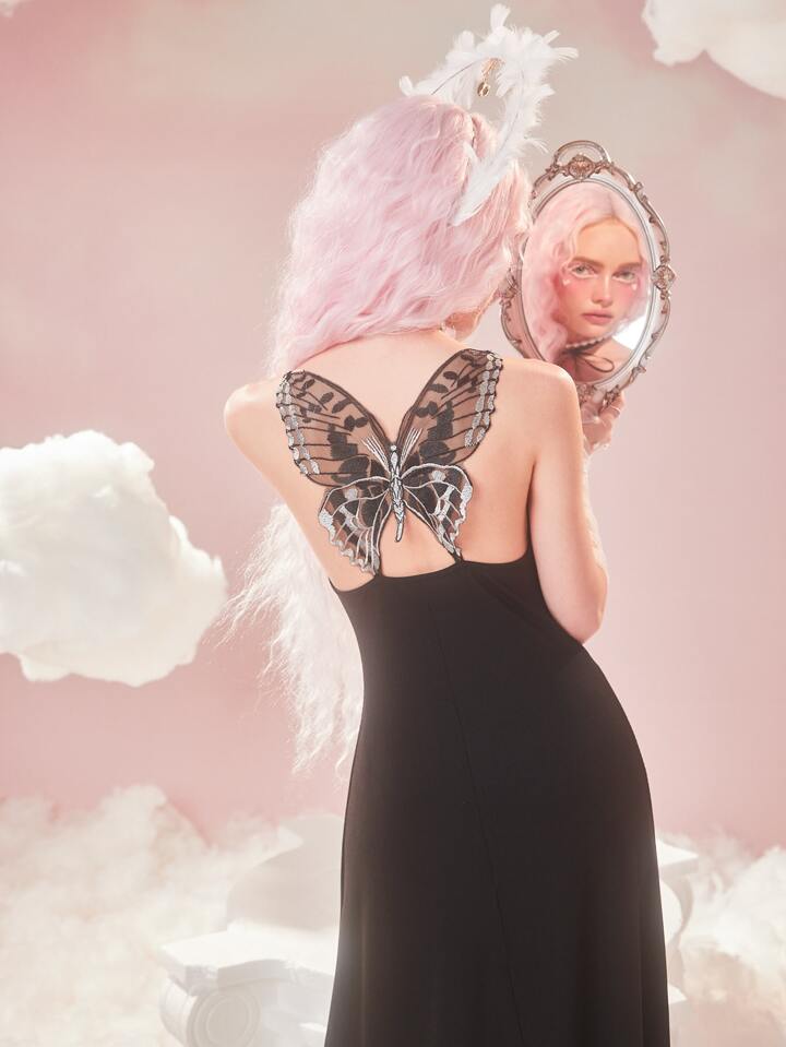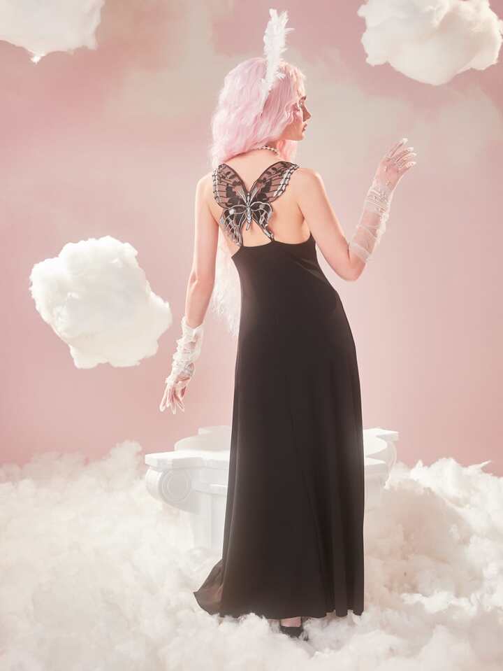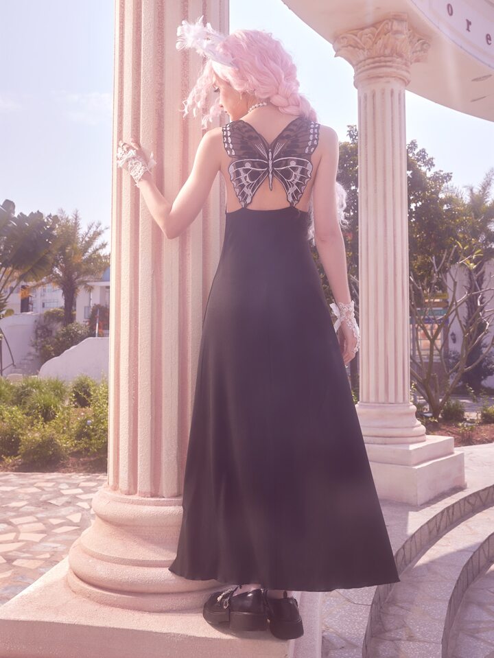 Sweetness Robe À Fines Brides Papillon Applique Dos-Nu Asymétrique