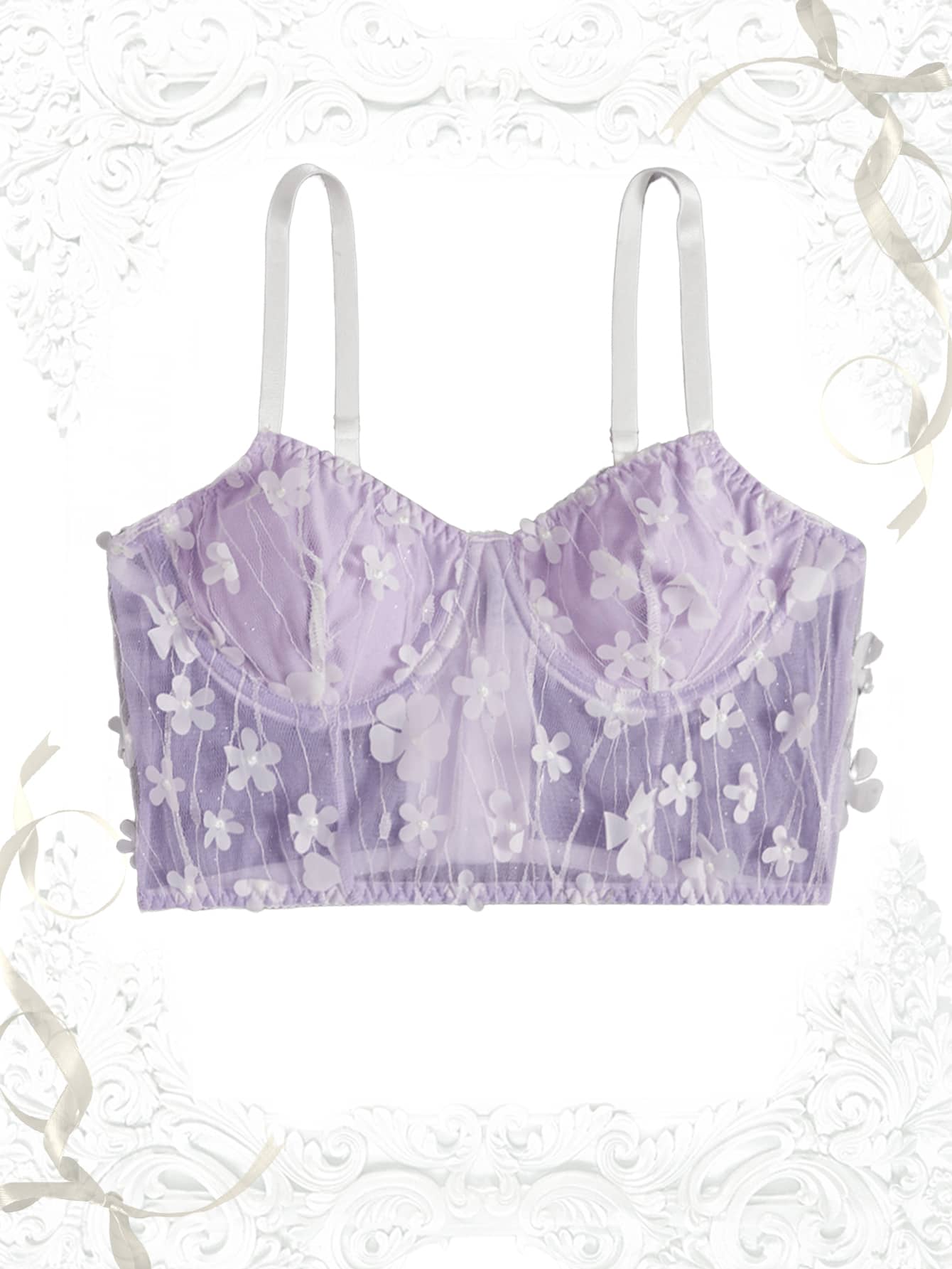 Sweetness Soutien-gorge à applique fleurie push-up en tulle