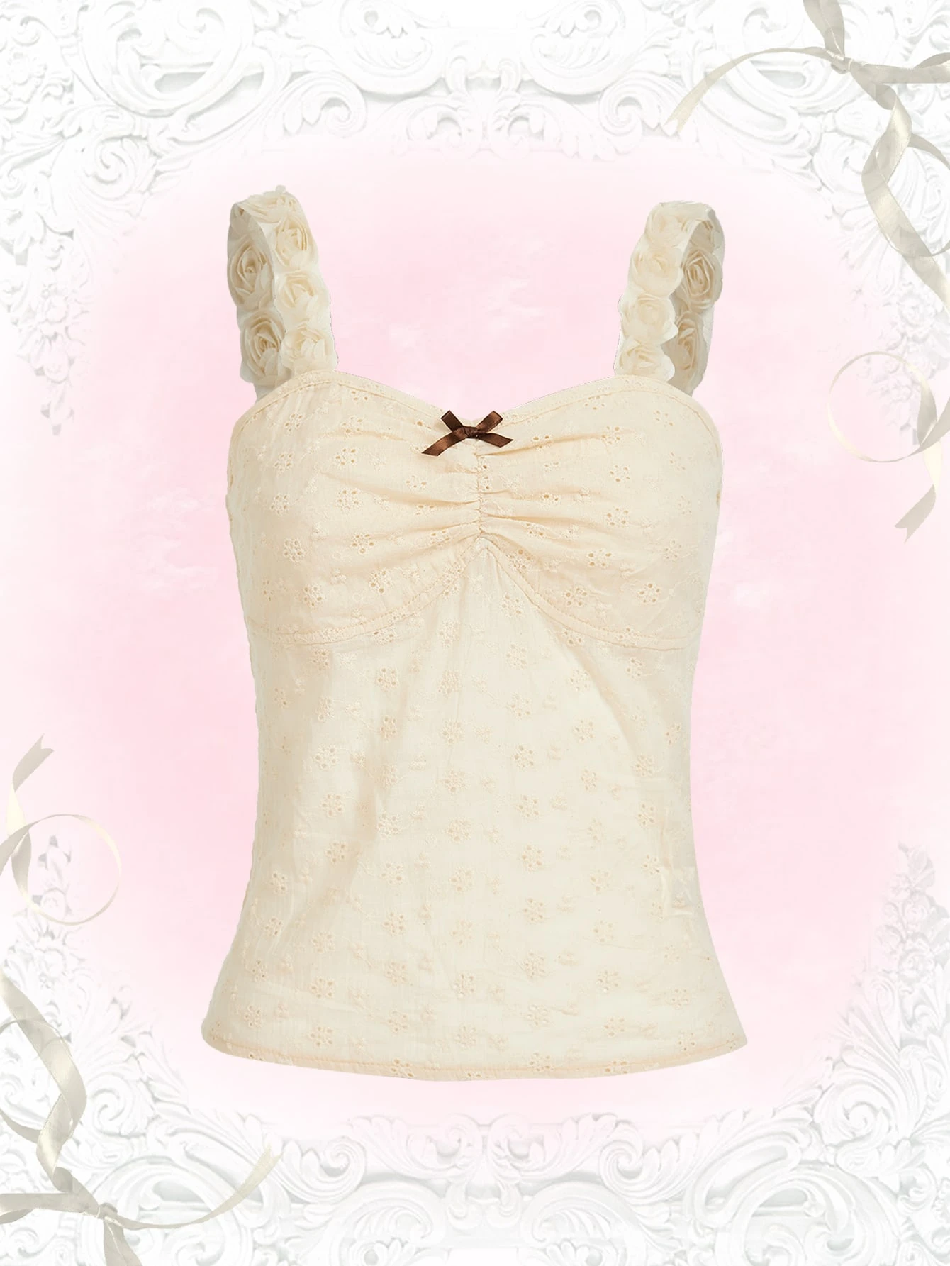 Sweetness Top à fines brides design fleuri à broderie anglaise à ruché