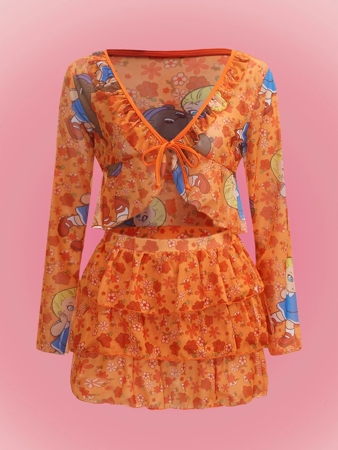 Sweetness Ensemble de cache-maillot fleuri & figure à nœud à volants