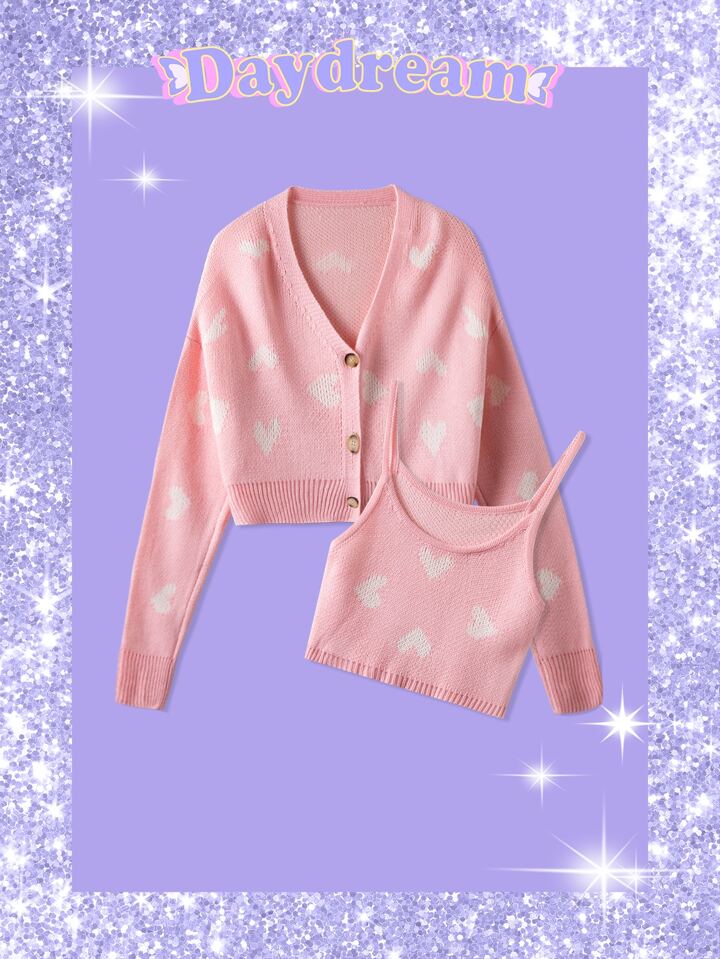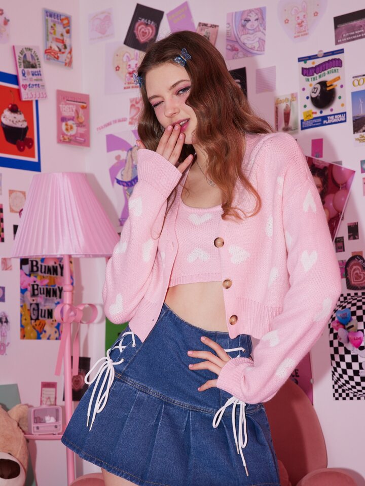 Sweetness Gilet avec motif cœur & Top en tricot